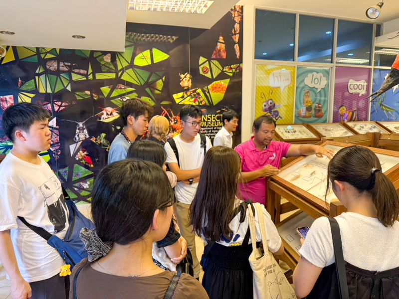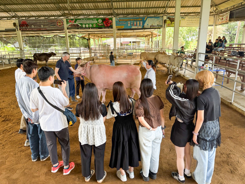 วันพฤหัสบดีที่ 4 กันยายน 2568 คณะเกษตร กำแพงแสน โดย รองศาสตราจารย์ ดร.ชเนษฎ์ ม้าลำพอง รองคณบดีฝ่ายวิจัย บริการวิชาการและวิเทศสัมพันธ์ ให้การต้อนรับอาจารย์และนักศึกษาจาก Meiji University ประเทศญี่ปุ่น จำนวน 11 คน ในการเข้าเยี่ยมชมและศึกษาดูงานด้านการเกษตร และได้เข้าเยี่ยมชม ศูนย์สาธิตการผลิตโคเนื้อครบวงจร (คาวบอยแลนด์) ภาควิชาสัตวบาล และศูนย์วิจัยและพัฒนากีฏวิทยาสิ่งแวดล้อม (โดมแมลง)