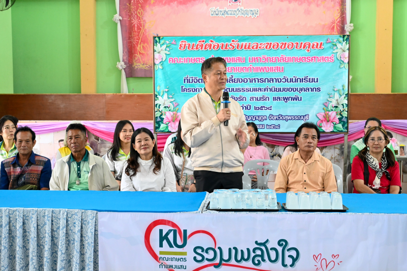 วันศุกร์ที่ 12 กันยายน 2568 คณะเกษตร กำแพงแสน นำโดย ผู้ช่วยศาสตราจารย์ ดร.ชัยสิทธิ์ ทองจู คณบดีคณะเกษตร กำแพงแสน ผู้ช่วยศาสตราจารย์ ดร.วนิดา สืบสายพรหม ผู้ช่วยคณบดีฝ่ายกิจการพิเศษ พร้อมด้วยบุคลากร คณะเกษตร กำแพงแสน ร่วมทำกิจกรรมที่ 1 “โครงการรวมพลังใจ สานรักและผูกพัน” ในโครงการสร้างวัฒนธรรมและค่านิยมของบุคลากร ปี 2568 โดยเป็นกิจกรรมให้บุคลากรผู้เกษียณอายุราชการ ได้ร่วมกันคิดสร้างสรรค์กิจกรรม และในปี 2568 เป็นกิจกรรมเลี้ยงอาหารกลางวันให้กับเด็กนักเรียนโรงเรียนสุพรรณบุรีปัญญานุกูล และโรงเรียนออทิสติกสุพรรณบุรี ซึ่งเป็นสถานศึกษาที่จัดการเรียนการสอนให้เด็กพิการ ทางสติปัญญา และออทิสติก และมอบสิ่งของพร้อมเงินที่ได้จากการร่วมกันบริจาคของบุคลากรคณะเกษตร กำแพงแสน โดยมี รองผู้อำนวยการ คณาจารย์ และนักเรียน ให้การต้อนรับ