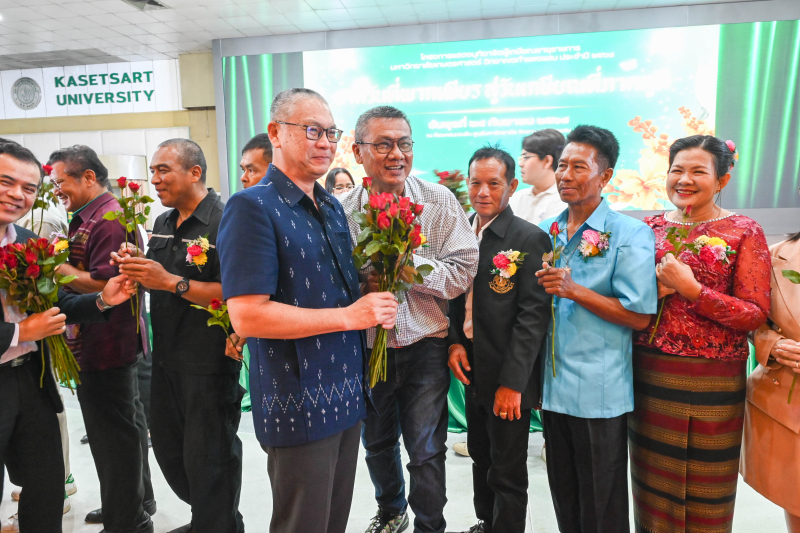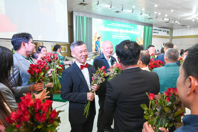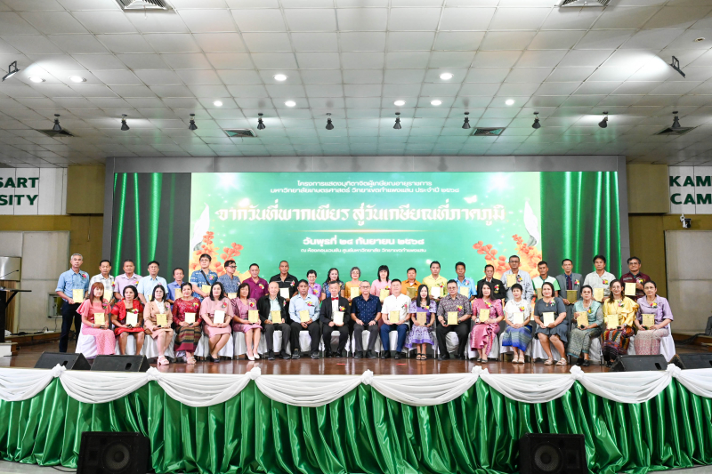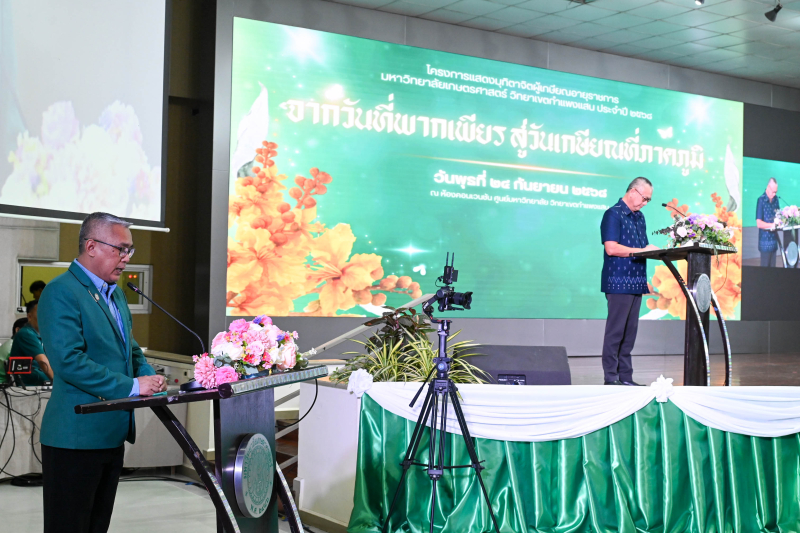 วันพุธที่ 24 กันยายน 2568 ผู้ช่วยศาสตราจารย์ ดร.ชัยสิทธิ์ ทองจู คณบดีคณะเกษตร กำแพงแสน พร้อมด้วยผู้บริหาร คณาจารย์ และบุคลากร ร่วมแสดงมุทิตาจิต และถ่ายรูปเป็นที่ระลึกกับผู้เกษียณฯ ในโครงการแสดงมุทิตาจิตผู้เกษียณอายุราชการ มหาวิทยาลัยเกษตรศาสตร์ วิทยาเขตกำแพงแสน ประจำปี 2568 “จากวันที่พากเพียร สู่วันเกษียณที่ภาคภูมิ” โดยมีผู้เกษียณอายุราชการจากคณะเกษตร กำแพงแสน เข้าร่วมในงาน จำนวน 11 ท่าน
