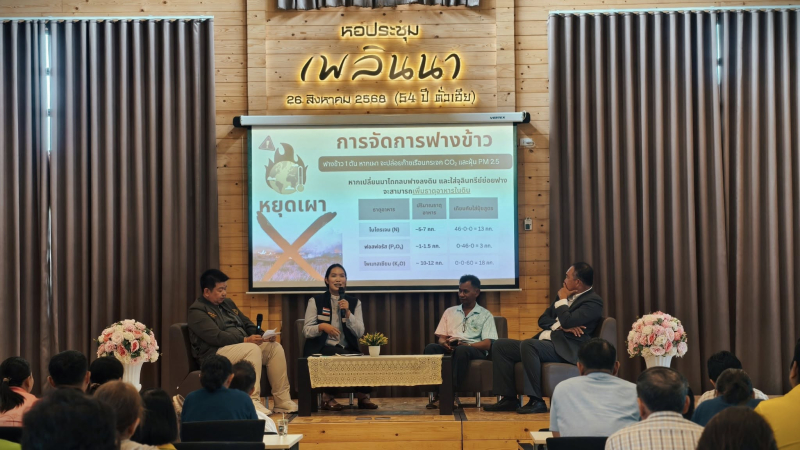 โดยได้รับเกียรติจาก นายกองเอกเชษฐา ขาวประเสริฐ รองผู้ว่าราชการจังหวัดสุพรรณบุรี เป็นประธานในพิธีเปิด พร้อมร่วมฟังเสวนา หัวข้อ องค์ความรู้ในการทำนาเพื่อมุ่งสู่เป้าหมายความเป็นกลางทางคาร์บอน จากผู้ทรงคุณวุฒิ 3 ท่าน ได้แก่