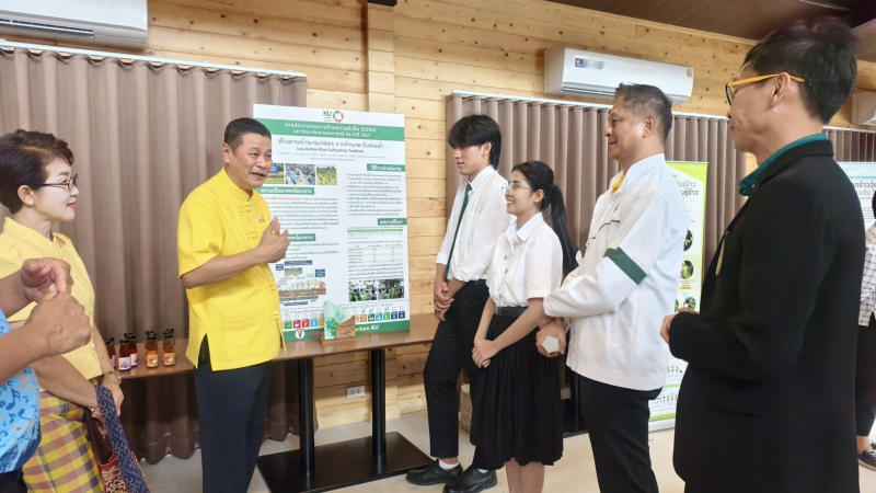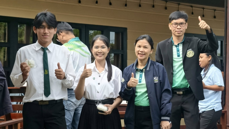 ผู้ช่วยศาสตราจารย์ ดร.ชัยสิทธิ์ ทองจู คณบดีคณะเกษตร กำแพงแสน ผู้ช่วยศาสตราจารย์ ดร.ธวัชชัย อินทร์บุญช่วย รองคณบดีฝ่ายพัฒนานิสิต และคณะ เข้าร่วมโครงการ carbon neutrality in paddy field นิทรรศการ "องค์ความรู้ในการทำนาเพื่อมุ่งสู่เป้าหมายความเป็นกลางทางคาร์บอน" จัดโดย รองศาสตราจารย์ ดร.ชลิดา เล็กสมบูรณ์ คณบดีคณะสหวิทยาการจัดการและเทคโนโลยี มหาวิทยาลัยเกษตรศาสตร์ วันศุกร์ที่ 26 กันยายน 2568 ณ ห้องเพลินนา ศูนย์เรียนรู้วิถีชีวิตและจิตวิญญาณชาวนาไทย อ.เมือง จ.สุพรรณบุรี