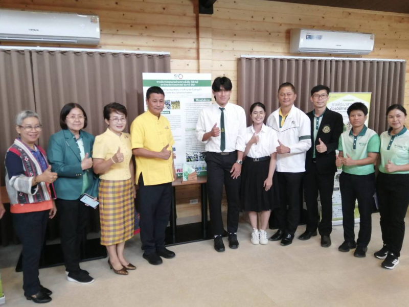 พร้อมด้วยการนำเสนอข้อมูลการทำนาข้าวคาร์บอนต่ำ โดยนางสาวสุภัทชา รอดเทศ นิสิตภาควิชาส่งเสริมและนิเทศาสตร์เกษตร และ นายกฤตัชญ์ ยี่หวา นิสิตภาควิชาพืชสวน