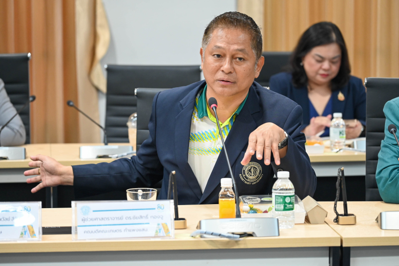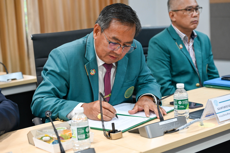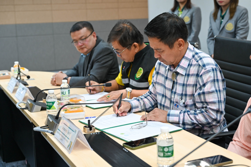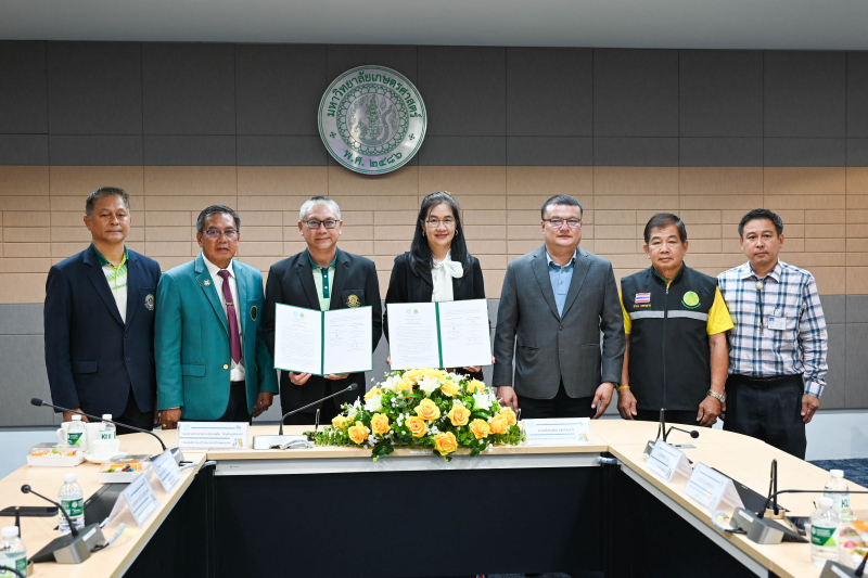 ผู้ช่วยศาสตราจารย์ ดร. ชัยสิทธิ์ ทองจู คณบดีคณะเกษตร กำแพงแสน พร้อมด้วยคณาจารย์ ร่วมในพิธีลงนามบันทึกข้อตกลงความร่วมมือ (MOU) กับสำนักงานสภาเกษตรกรแห่งชาติ โดยสำนักงานสภาเกษตรกรจังหวัดนครปฐม เพื่อความร่วมมือในการส่งเสริมและสนับสนุนการพัฒนาความรู้ ทักษะ และการวิจัยด้านการเกษตร รวมทั้งการนำผลงานวิจัยสู่การปฏิบัติ การส่งเสริมโอกาสทางการศึกษาแก่เกษตรกรและบุตรเกษตรกร ตลอดจนการบูรณาการความร่วมมือเพื่อเสริมสร้างความมั่นคง มั่งคั่ง และยั่งยืนของภาคเกษตรกรรม เมื่อวันอังคารที่ 30 กันยายน 2568 ณ ห้องประชุม 305 อาคารหลวงสุวรรณวาจกกสิกิจ มหาวิทยาลัยเกษตรศาสตร์ วิทยาเขตกำแพงแสน