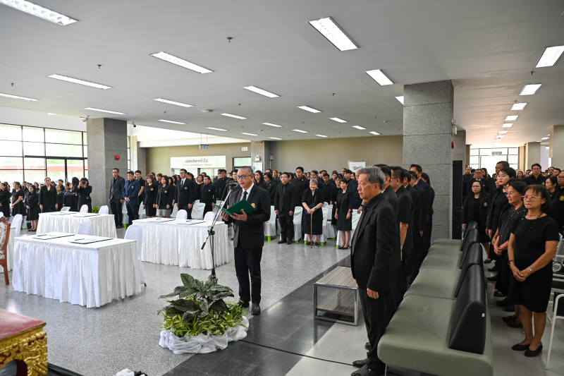 ผู้ช่วยศาสตราจารย์ ดร.ชัยสิทธิ์ ทองจู คณบดีคณะเกษตร กำแพงแสน พร้อมด้วยผู้บริหาร คณาจารย์ บุคลากร และนิสิต ร่วมพิธีน้อมถวายความอาลัย สมเด็จพระนางเจ้าสิริกิติ์ พระบรมราชินีนาถ พระบรมราชชนนีพันปีหลวง ในวันจันทร์ที่ 27 ตุลาคม 2568 ณ ลานอเนกประสงคฺ์ ชั้น 1 อาคารหลวงสุวรรณวาจกกสิกิจ มหาวิทยาลัยเกษตรศาสตร์ วิทยาเขตกำแพงแสน