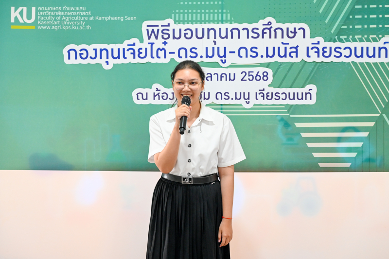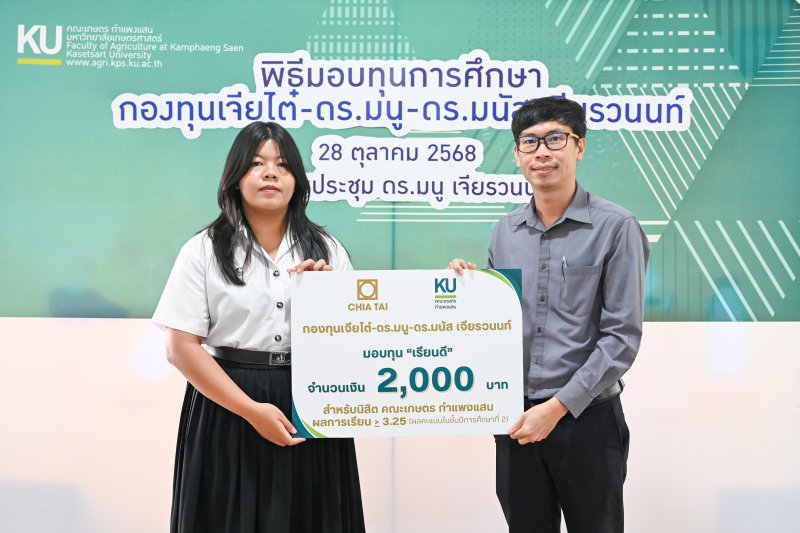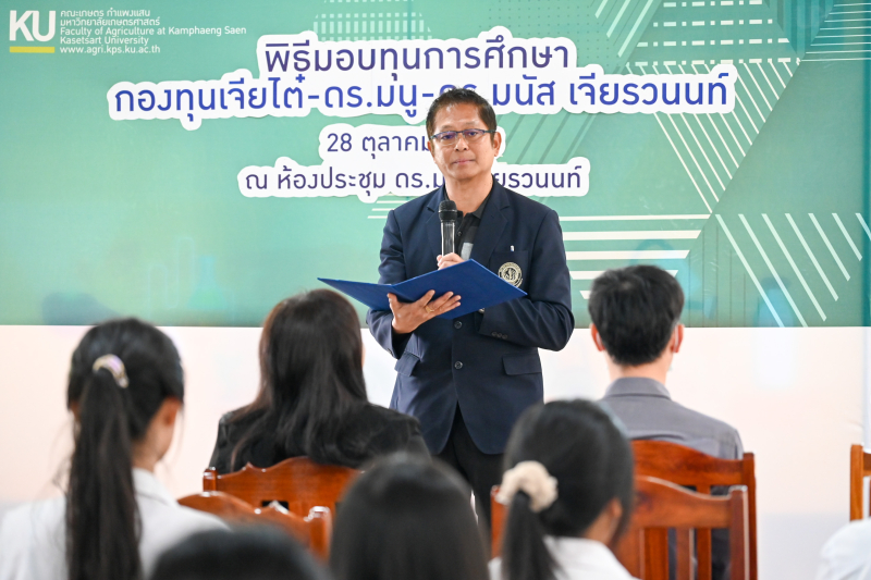 พิธีมอบทุนการศึกษา กองทุนเจียไต๋-ดร.มนู-ดร.มนัส เจียรวนนท์ สำหรับนิสิตคณะเกษตร กำแพงแสน ประจำปีการศึกษา 2568