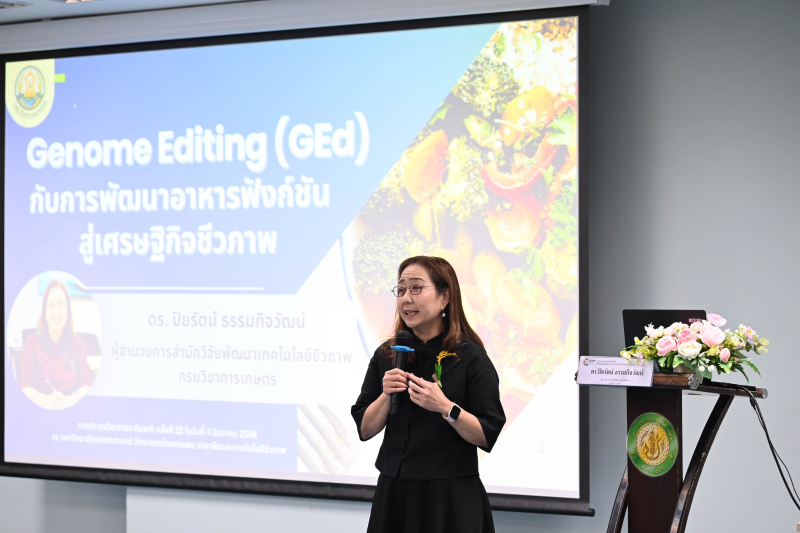 2. เรื่อง “GEd กับการพัฒนาอาหารฟังก์ชั่น สู่เศรษฐกิจชีวภาพ” โดย ดร.ปิยรัตน์ ธรรมกิจวัฒน์ ผู้อำนวยการสำนักวิจัยพัฒนาเทคโนโลยีชีวภาพ กรมวิชาการเกษตร