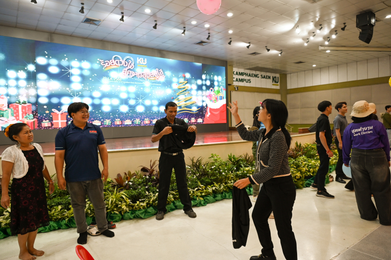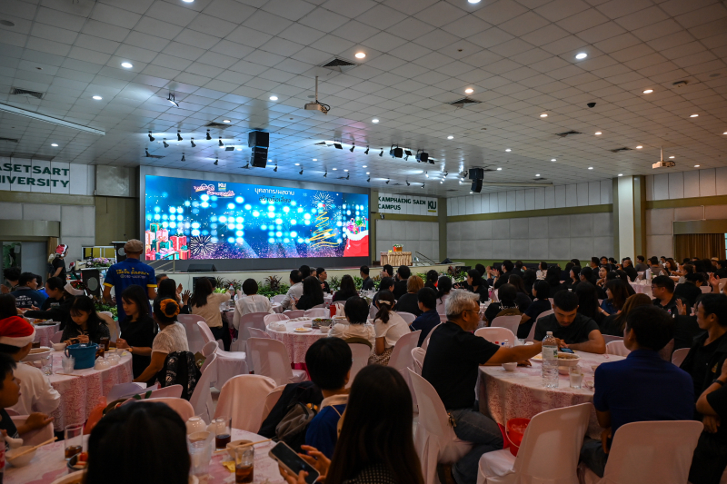 วันอังคารที่ 23 ธันวาคม 2568 คณะเกษตร กำแพงแสน จัดกิจกรรม “ร้อยดวงใจ สู่ความสุขสดใส ประจำปี 2568" ภายใต้โครงการสร้างวัฒนธรรมและค่านิยมของบุคลากร คณะเกษตร กำแพงแสน ก่อนเริ่มงาน มีกิจกรรมเสริมสร้างวัฒนธรรมและค่านิยมของบุคลากร (สันทนาการ) ผู้ช่วยศาสตราจารย์ ดร.ชัยสิทธิ์ ทองจู คณบดีคณะเกษตร กำแพงแสน เป็นประธานกล่าวเปิดงาน ขอบคุณบุคลากร และอวยพรเนื่องในโอกาสปีใหม่ 2568 ร่วมชมวีดีทัศน์ “กิจกรรมและการดำเนินงานต่างๆ ของคณะเกษตร กำแพงแสน ตลอด ปี 2568 ที่ผ่านมา กิจกรรมแนะนำบุคลากรใหม่ และรับประทานอาหารร่วมกัน ณ ห้องคอนเวนชั่น อาคารศูนย์มหาวิทยาลัยเกษตรศาสตร์ วิทยาเขตกำแพงแสน