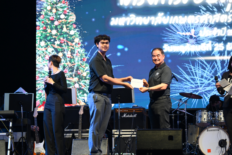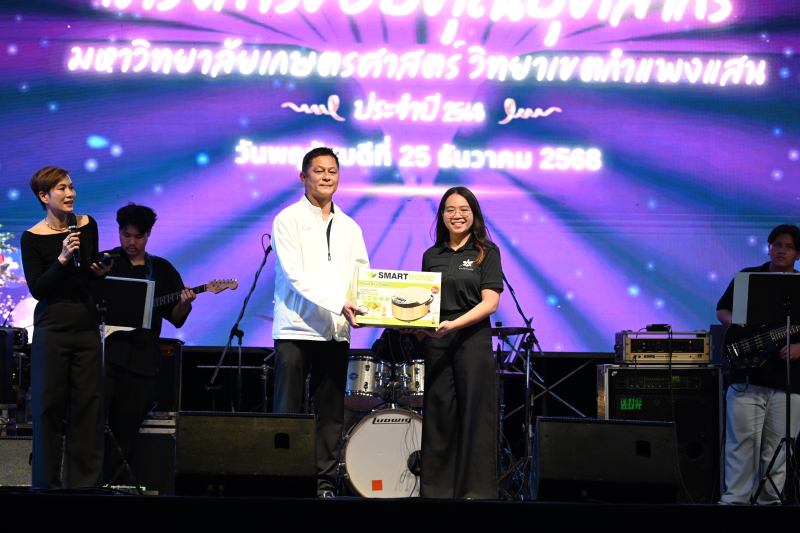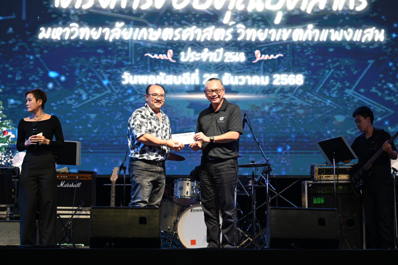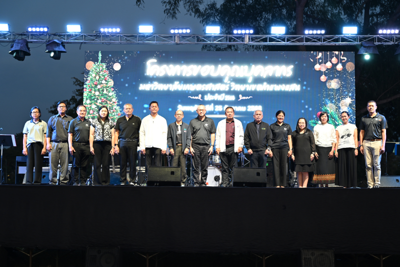 วันพฤหัสบดีที่ 25 ธันวาคม 2568 ผู้ช่วยศาสตราจารย์ ดร.ชัยสิทธิ์ ทองจู คณบดีคณะเกษตร กำแพงแสน พร้อมด้วยผู้บริหาร คณาจารย์ และบุคลากร ร่วมกิจกรรมเลี้ยงขอบคุณบุคลากร มหาวิทยาลัยเกษตรศาสตร์ วิทยาเขตกำแพงแสน เริ่มด้วยยืนสงบนิ่ง 93 วินาที ในพิธีเปิด กล่าวรายงานโครงการ โดย ผู้ช่วยศาสตราจารย์ ดร.ศิริชัย ศรีพรหม ผู้ช่วยอธิการบดีฝ่ายบริหาร กีฬาและศิลปวัฒนธรรม วิทยาเขตกำแพงแสน กล่าวเปิดโครงการและกล่าวถวายความอาลัย สมเด็จพระนางเจ้าสิริกิติ์ พระบรมราชินีนาถ พระบรมราชชนนีพันปีหลวง โดย รองศาสตราจารย์ นายสัตวแพทย์ ดร.อนุชัย ภิญโญภูมิมิมินทร์ รองอธิการบดีวิทยาเขตกำแพงแสน ร่วมชมการแสดงเพื่อถวายความอาลัย แด่สมเด็จพระนางเจ้าสิริกิติ์ พระบรมราชินีนาถ พระบรมราชชนนีพันปีหลวง ชมวีดีทัศน์กิจกรรมวิทยาเขตกำแพงแสน ในรอบปี พ.ศ. 2568 การแสดงดนตรีเทิดพระเกียรติ งานขอบคุณและรับประทานอาหารร่วมกัน จับสลากรางวัลบนเวที (โชคชั้นที่ 2) ณ ลานจอดหน้าอาคารพลศึกษา 2