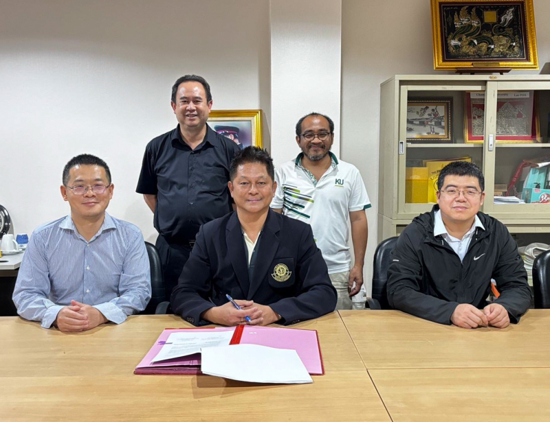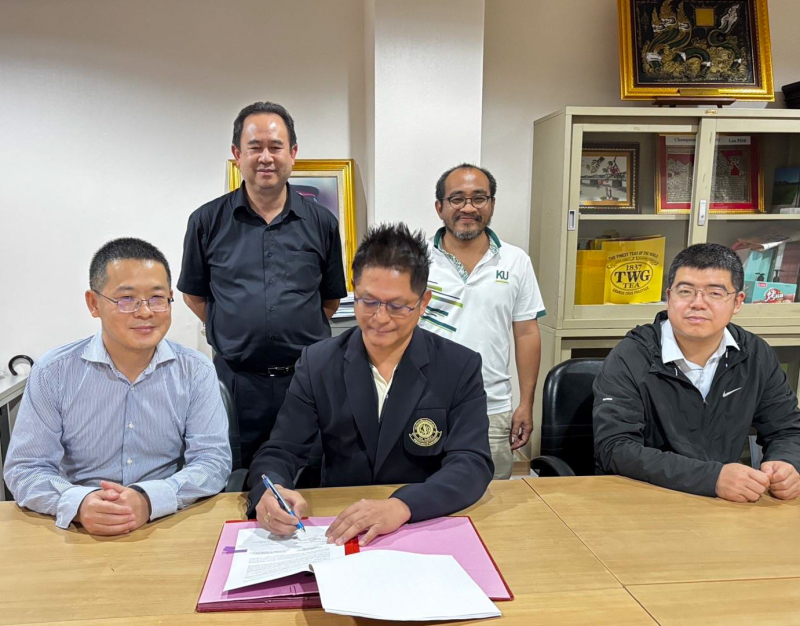 เมื่อวันที่ 23 ธันวาคม 2568 Mr. Wang Chang และ Mr. Wang Bin นักวิจัยอาวุโสของ Crop Research Institute (CRI) ของ Gansu Academy of Agricultural Sciences มณฑลกานซู (Gansu) สาธารณรัฐประชาชนจีน ได้เดินทางมาเข้าพบ ผู้ช่วยศาสตราจารย์ ดร.ชัยสิทธิ์ ทองจู คณบดีคณะเกษตร กำแพงแสน และ รองศาสตราจารย์ ดร.ชเนษฎ์ ม้าลำพอง รองคณบดีฝ่ายวิจัยและบริการวิชาการเพื่อความเป็นสากล เพื่อหารือความร่วมมือระหว่างคณะเกษตร กำแพงแสน กับ CRI และในโอกาสนี้ได้ลงนามข้อตกลงความร่วมมือวิจัยเกี่ยวกับพืชตระกูลถั่วร่วมกัน ณ ห้องประชุม 4 คณะเกษตร กำแพงแสน