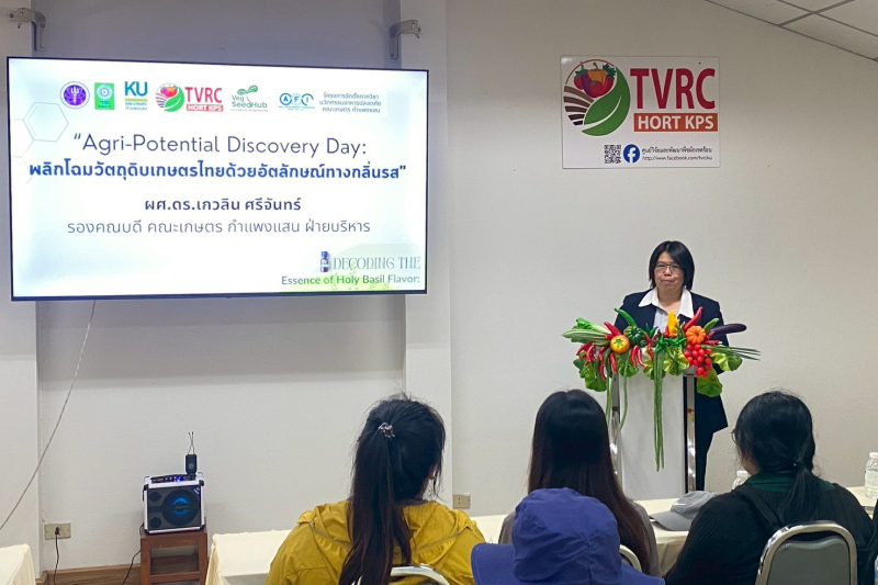 ศูนย์วิจัยและพัฒนาพืชผักเขตร้อน (TVRC) ภาควิชาพืชสวน และโครงการจัดตั้งภาควิชานวัตกรรมอาหารปลอดภัย คณะเกษตร กำแพงแสน มหาวิทยาลัยเกษตรศาสตร์ ร่วมกับศูนย์รวมผู้เชี่ยวชาญด้านเมล็ดพันธุ์ผักของไทย (Veg-SeedHub) จัดกิจกรรม “Agri-Potential Discovery Day: พลิกโฉมวัตถุดิบเกษตรไทยด้วยอัตลักษณ์ทางกลิ่นรส” ในวันศุกร์ที่ 23 มกราคม พ.ศ. 2569 ณ ศูนย์วิจัยและพัฒนาพืชผักเขตร้อน ภาควิชาพืชสวน คณะเกษตร กำแพงแสน เพื่อส่งเสริมการค้นพบศักยภาพของวัตถุดิบเกษตรไทยผ่านมิติด้านกลิ่นรส และเชื่อมโยงองค์ความรู้สู่การต่อยอดเชิงอุตสาหกรรมอาหาร