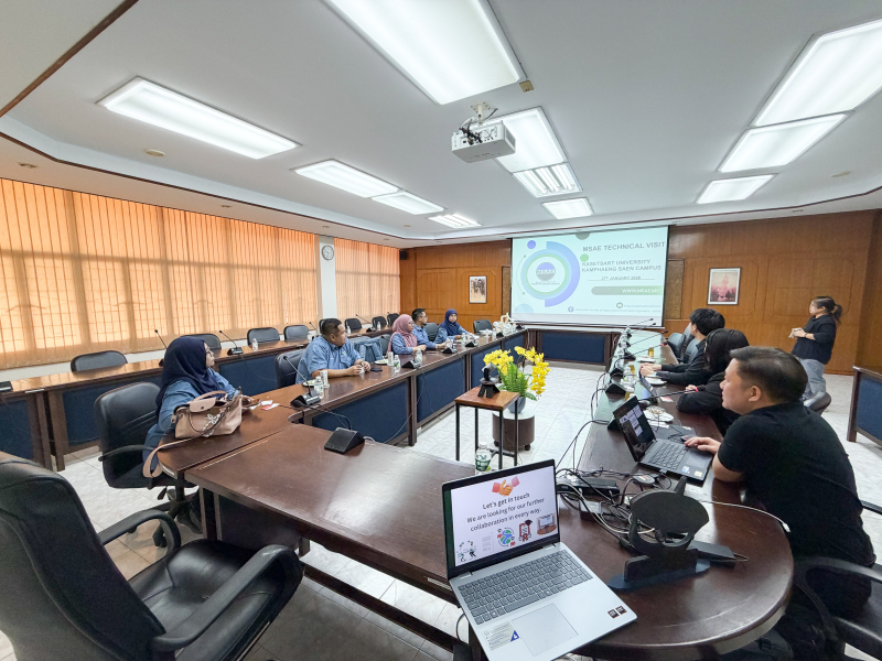 วันอังคารที่ 27 มกราคม 2569 ผู้ช่วยศาสตราจารย์ ดร. ชัยสิทธิ์ ทองจู คณบดีคณะเกษตร กำแพงแสน พร้อมด้วยผู้ช่วยศาสตราจารย์ ดร. จักรพงศ์ ภิญโญ ผู้ช่วยคณบดีฝ่ายวิจัยและบริการวิชาการเพื่อความเป็นสากลผู้ช่วยศาสตราจารย์ ดร.พัชราภรณ์ ถิ่นจันทร์ ประธานคณะกรรมการดำเนินงานโครงการจัดตั้งภาควิชานวัตกรรมอาหารปลอดภัย และอ.ดร.นราธิป สุจินดา ผู้ประสานงานหลัก ให้การต้อนรับคณะจาก Malaysian Society of Agricultural and Food Engineers (MSAE) และบุคลากรเครือข่ายจากมหาวิทยาลัยต่าง ๆ ในประเทศมาเลเซีย เนื่องในโอกาสเข้าเยี่ยมชมและประชุมหารือร่วมกันเพื่อสร้างความร่วมมือทางวิชาการและการวิจัยในระดับสากล