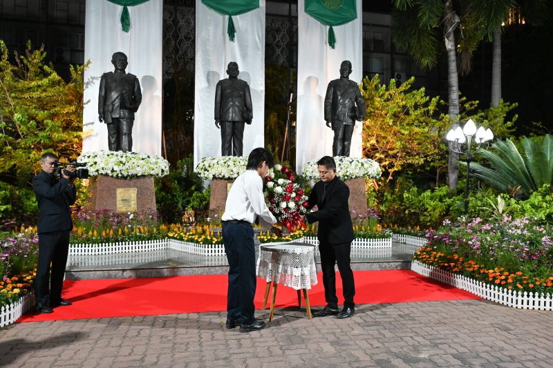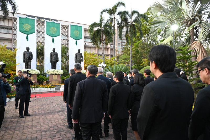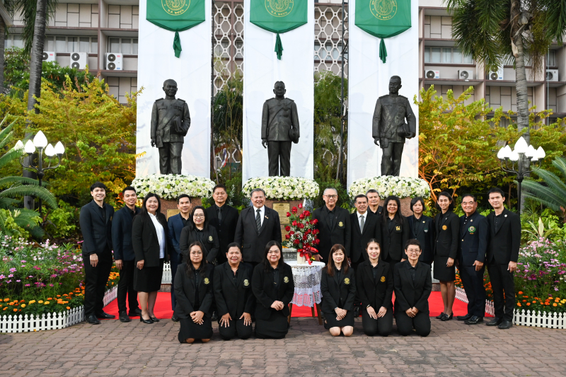 วันจันทร์ที่ 2 กุมภาพันธ์ 2569 เวลา 6.30 น. ผู้ช่วยศาสตราจารย์ ดร.ชัยสิทธิ์ ทองจู คณบดีคณะเกษตร กำแพงแสน พร้อมด้วย รองศาสตราจารย์ ดร.นภาพร พันธุ์กมลศิลป์ รองคณบดีฝ่ายวิชาการ ผู้ช่วยศาสตราจารย์ ดร.จักรพงศ์ ภิญโญ ผู้ช่วยคณบดีฝ่ายวิจัยและบริการวิชาการเพื่อความเป็นสากล อาจารย์ ดร.พิสุทธิ์ เขียวมณี ผู้ช่วยคณบดีฝ่ายพัฒนานิสิตและกิจการพิเศษ บุคลากร และนิสิต ร่วมงาน “วันคล้ายวันสถาปนามหาวิทยาลัยเกษตรศาสตร์ ครบรอบ 83 ปี” โดยวางแจกันดอกไม้ เบื้องหน้าอนุสาวรีย์สามบูรพาจารย์ ผู้มีคุณูปการ และบุกเบิกวางรากฐานการเกษตร และการศึกษาด้านการเกษตรของประเทศไทยและของมหาวิทยาลัยเกษตรศาสตร์ ณ มหาวิทยาลัยเกษตรศาสตร์ บางเขน
