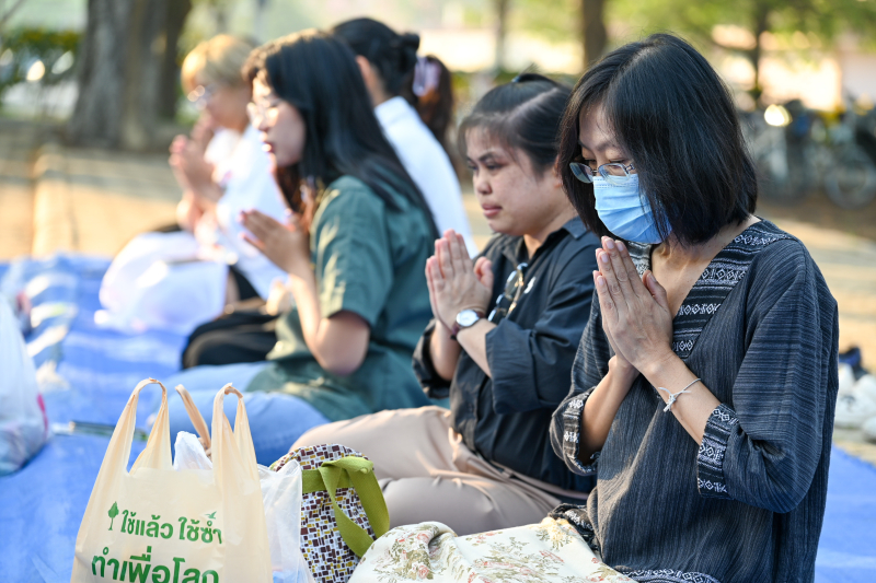วันพฤหัสบดีที่ 12 กุมภาพันธ์ 2569 เวลา 17.15 น. ผู้บริหาร คณาจารย์ และนิสิต คณะเกษตร กำแพงแสน ร่วมกิจกรรม "ตักบาตรประจำสัปดาห์ ชมรมพุทธศาสน์ กำแพงแสน" โดย ผู้ช่วยศาสตราจารย์ ดร.ชัยสิทธิ์ ทองจู คณบดีคณะเกษตร กำแพงแสน เป็นประธานนำกล่าวถวายภัตตาหารและสังฆทาน จากนั้นร่วมกันตักบาตรข้าวสารอาหารแห้งคณะสงฆ์ 9 รูป จากวัดหนองโพธิ์ ต.ห้วยหมอนทอง อ.กำแพงแสน เพื่อเป็นการสั่งสมบุญกุศล สืบทอดอายุพระพุทธศาสนา และร่วมสืบสานวัฒนธรรมประเพณีอันดีงาม ณ เรือนธรรมกำแพงแสน