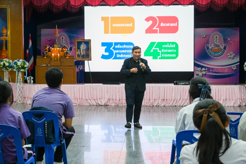 วันพุธที่ 18 กุมภาพันธ์ 2569 คณะเกษตร กำแพงแสน โดย ผู้ช่วยศาสตราจารย์ ดร.เชิดพงษ์ ขีระจิตต์ หัวหน้าภาควิชาส่งเสริมและนิเทศศาสตร์เกษตร และนางสาวอุทัยวรรณ เจกบุตร นักวิชาการศึกษาชำนาญการ ร่วมให้ข้อมูลหลักสูตรการเรียนการสอนของ คณะเกษตร กำแพงแสน ในกิจกรรมแนะแนวการศึกษาสัญจร (Road Show) มหาวิทยาลัยเกษตรศาสตร์ วิทยาเขตกำแพงแสน ประจำปีการศึกษา 2569 ร่วมกับสำนักงานเขตพื้นที่การศึกษามัธยมศึกษาเพชรบุรี (สพม.เพชรบุรี) ณ โรงเรียนพรหมานุสรณ์ จังหวัดเพชรบุรี