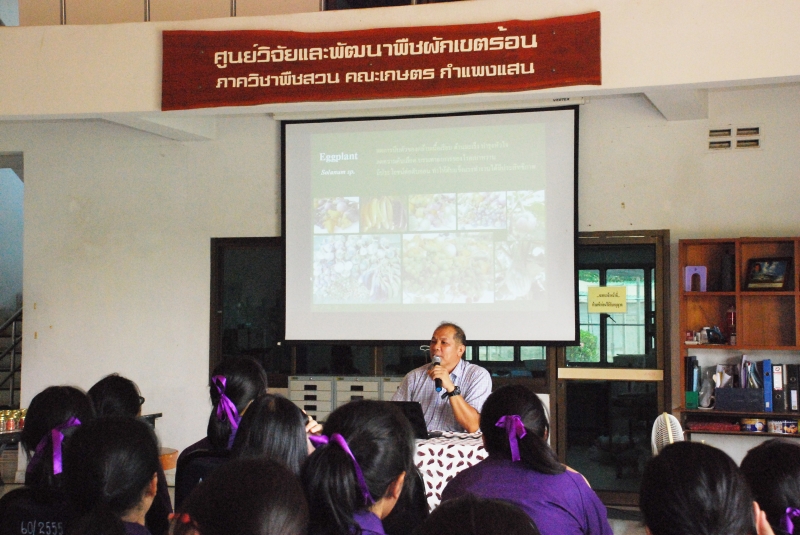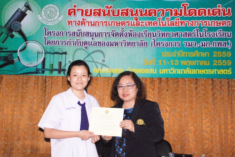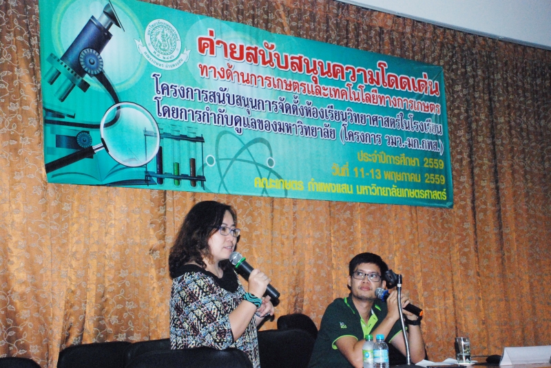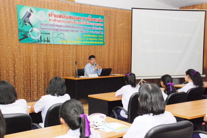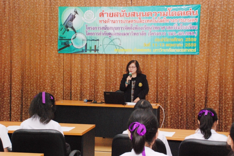 คณะเกษตร กำแพงแสน จัดกิจกรรมค่ายสนับสนุนความโดดเด่นทางการเกษตรและเทคโนโลยีทางการเกษตร ภายใต้โครงการสนับสนุนการจัดตั้งห้องเรียนวิทยาศาสตร์ในโรงเรียนโดยการกำกับดูแลของมหาวิทยาลัย (วมว.) เพื่อสนับสนุนความโดดเด่นทางด้านวิทยาศาสตร์และเทคโนโลยีทางการเกษตร ให้เห็นถึงความสำคัญของการศึกษาในสาขาการเกษตร และเปิดมุมมองใหม่เกี่ยวกับสาขาการเกษตร ให้แก่นักเรียนที่เข้าร่วมโครงการซึ่งเป็นนักเรียนในระดับชั้นมัธยมศึกษาปีที่ 4 จากโรงเรียนสาธิตแห่งมหาวิทยาลัยเกษตรศาสตร์ วิทยาเขตกำแพงแสน จำนวน 60 คน ในระหว่างวันที่ 11-13 พฤษภาคม 2559 โดย ผศ.ดร.สุกัญญา รัตนทับทิมทอง รองคณบดีฝ่ายวิเทศสัมพันธ์ เป็นผู้กล่าวต้อนรับ และแนะนำคณะเกษตร กำแพงแสน