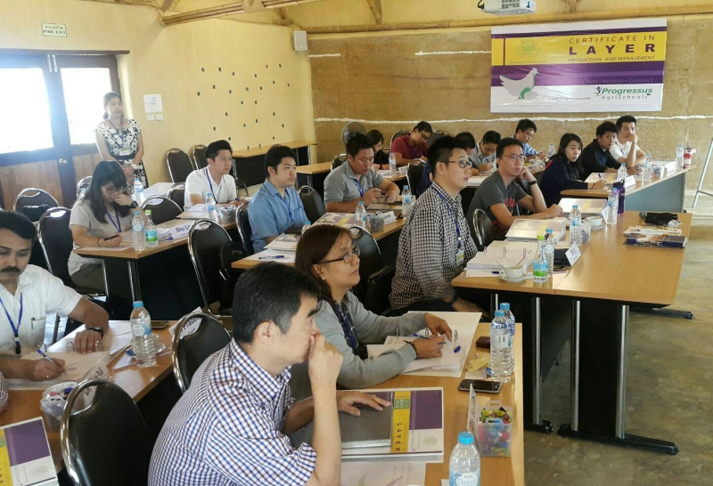 วันที่ 23 - 27 พฤษภาคม 2559 ภาควิชาสัตวบาล คณะเกษตร กำแพงแสน มหาวิทยาลัยเกษตรศาสตร์ วิทยาเขตกำแพงแสน ร่วมกับ โปรเกรสอัส จัดอบรมระยะสั้น หลักสูตร The Certificate of Layer Production and Management ภายใต้โครงการ อะกริ-สคูล มีผู้เข้าร่วมอบรมจากฟาร์มไก่ไข่, ธุรกิจผลิตไข่ครบวงจร, ผู้จำหน่ายอาหารและส่วนผสมอาหารสัตว์, ผู้จำหน่ายเครื่องจักรและอุปกรณ์ที่ใช้ในฟาร์มไก่ไข่ ทั้งในประเทศและต่างประเทศ ผู้เข้าร่วมอบรมมาจากประเทศต่างๆ ในภูมิภาคเอเชียแปซิฟิค ได้แก่ อินโดนีเซีย, เวียดนาม, สิงคโปร์, มาเลเซีย, อินเดีย, และ ไทย จำนวน 26 ท่าน