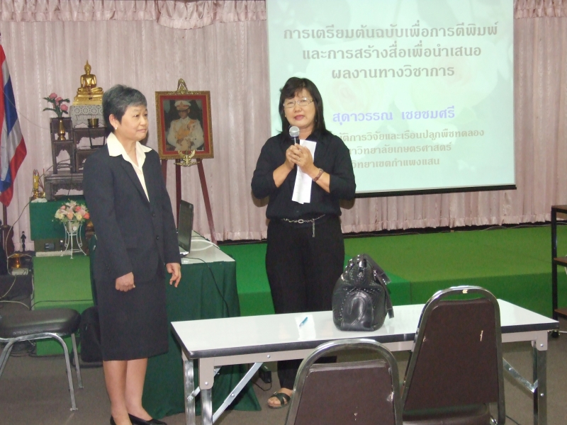 วันที่ 17 พฤษภาคม 2559 ศูนย์ปฏิบัติการวิจัยและเรือนปลูกพืชทดลอง ศูนย์วิจัยและบริการวิชาการ จัดโครงการจัดการองค์ความรู้เรื่อง การเตรียมตัวต้นฉบับเพื่อการตีพิมพ์ และการสร้างสื่อเพื่อนำเสนอผลงานทางวิชาการ ให้แก่บุคลากรศูนย์ปฏิบัติการวิจัยฯ ตำแหน่ง นักวิจัย เจ้าหน้าที่วิจัย นักวิชาการเกษตร จำนวน 13 คน