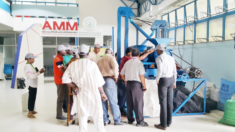 ผู้อบรมจากกลุ่มประเทศแอฟริกาดูงานเกี่ยวกับการผลิตและใช้เครื่องจักรกลเกษตรในการผลิตข้าวอย่างครบวงจร