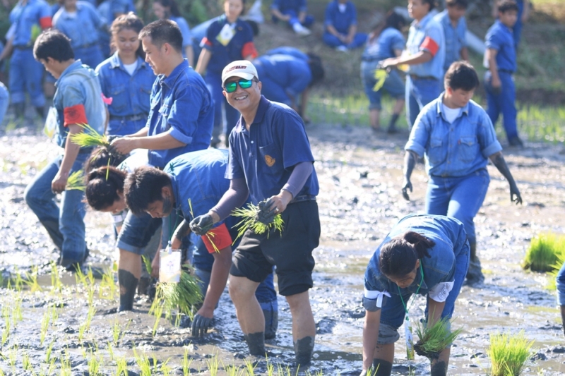 วันที่ 21 สิงหาคม 2559 คณะเกษตร กำแพงแสน จัดโครงการ สืบสานตำนานเกษตร(ประเพณีการดำนา) ประจำปีการศึกษา 2559 เพื่อให้นิสิตใหม่มีประสบการณ์ในการดำนา ได้รับความรู้พื้นฐานและมีทักษะเบื้องต้นในการปฏิบัติงานทางด้านการเกษตร ซึ่งเป็นการเสริมสร้างความสัมพันธ์อันดีระหว่างคณาจารย์กับนิสิต และระหว่างนิสิตรุ่นพี่กับรุ่นน้อง ตลอดจนความภาคภูมิใจแก่นิสิตคณะเกษตร กำแพงแสน โดย นายภูริ วิชญ์โอฬาร ประธานโครงการ เป็นผู้กล่าวรายงาน และได้รับเกียรติจาก อาจารย์ ดร.ปิยะณัฎฐ์ ผกามาศ รองคณบดีฝ่ายกิจการนิสิต เป็นประธานกล่าวเปิดโครงการ มอบกล้าข้าวพันธุ์ปิ่นเกษตร 1 แก่ตัวแทนนิสิตชายและหญิงชั้นปีที่ 1 และดำนาปลูกข้าวร่วมกับคณาจารย์และนิสิตคณะเกษตร กำแพงแสน