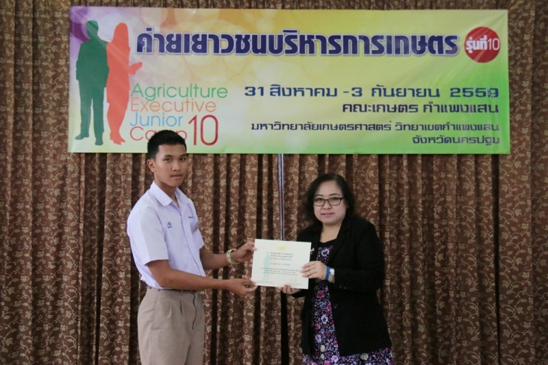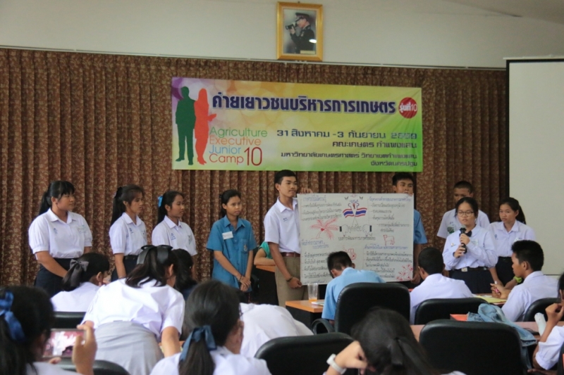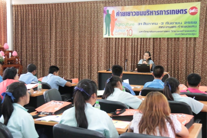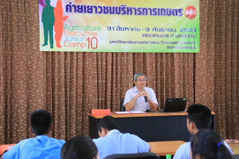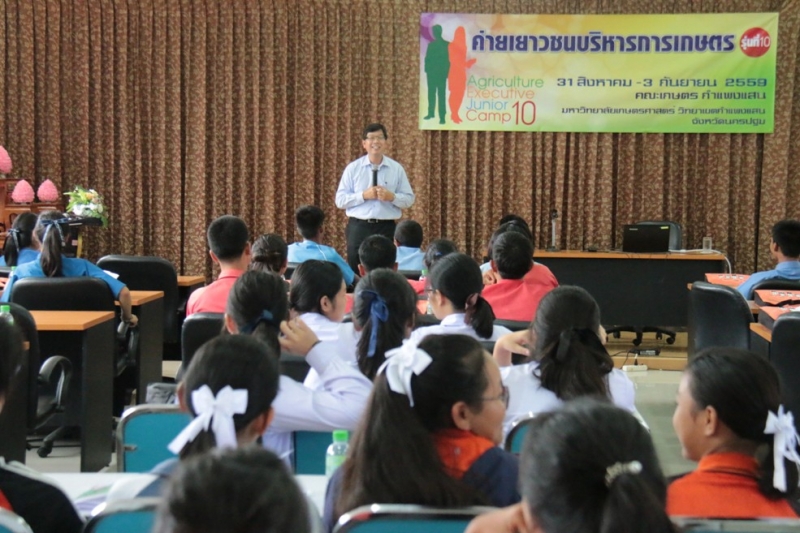 ผศ.ดร.เสกสม อาตมางกูร คณบดีคณะเกษตร กำแพงแสน กล่าวเปิดโครงการ ค่ายเยาวชนบริหารการเกษตร รุ่นที่ 10 จัดขึ้นโดยคณะเกษตร กำแพงแสน ระหว่างวันที่ 31 สิงหาคม 3 กันยายน 2559 ให้กับนักเรียนระดับชั้นมัธยมศึกษาตอนปลาย สายวิทย์ และอาจารย์สายวิทยาศาสตร์ จำนวน 63 คน จากโรงเรียนต่างๆ จำนวน 12 แห่งทั่วประเทศ เพื่อเสริมสร้างความรู้ความเข้าใจในบทบาทและความสำคัญของการเกษตร ผู้ประกอบการทางการเกษตร นักเกษตร และวิทยาศาสตร์เกษตร มุ่งที่จะให้เห็นแนวทางการประกอบอาชีพที่ไม่ใช่เฉพาะทำการเกษตรในมิติเดิมเพียงอย่างเดียวเท่านั้น แต่เป็นการเปิดมุมมองให้เยาวชนหันมาเป็นนักคิด นักวิทย์ นักบริหารการเกษตร รวมทั้งเป็นนักเกษตรที่มีคุณภาพ เพื่อพัฒนาประเทศต่อไปในอนาคต ณ คณะเกษตร กำแพงแสน ทั้งยังไปศึกษาดูงานแหล่งเรียนรู้