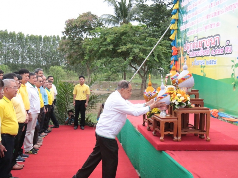 โดยได้รับเกียรติจาก นายอำพล เสนาณรงค์ องคมนตรี เป็นประธานในพิธี เปิดกรวยดอกไม้และวางพานพุ่ม พร้อมถวายราชสดุดีแด่พระบาทสมเด็จพระเจ้าอยู่หัว สมเด็จพระนางเจ้าสิริกิติ์ พระบรมราชินีนาถ สมเด็จพระเจ้าลูกเธอ เจ้าฟ้าจุฬาภรณวลัยลักษณ์ อัครราชกุมารี รองศาสตราจารย์ ดร.ตฤณ แสงสุวรรณ รักษาการแทนรองอธิการบดีวิทยาเขตกำแพงแสน กล่าวรายงาน ดร.จงรัก วัชรินทร์รัตน์ รักษาการแทนอธิการบดีมหาวิทยาลัยเกษตรศาสตร์ กล่าวต้อนรับ นายอำพล เสนาณรงค์ องคมนตรี กล่าวเปิดโครงการ และปลูกต้นยางนา จำนวน ๑ ต้น เป็นปฐมฤกษ์ จากนั้น นายกสภามหาวิทยาลัยเกษตรศาสตร์ อธิการบดี รองอธิการบดีวิทยาเขตกำแพงแสน ผู้บริหารมหาวิทยาลัยเกษตรศาสตร์ แขกร่วมงาน ผู้แทนจากกรมป่าไม้ บุคลากร นิสิต และนักเรียน ร่วมกันปลูกต้นยางนา