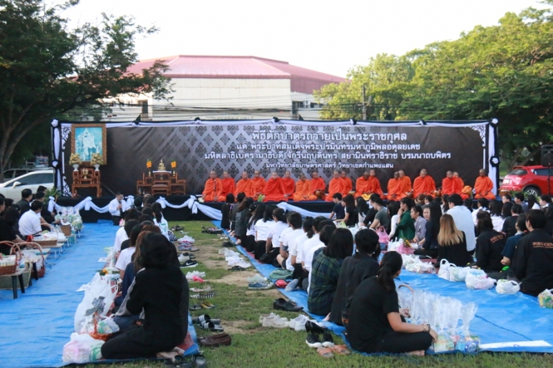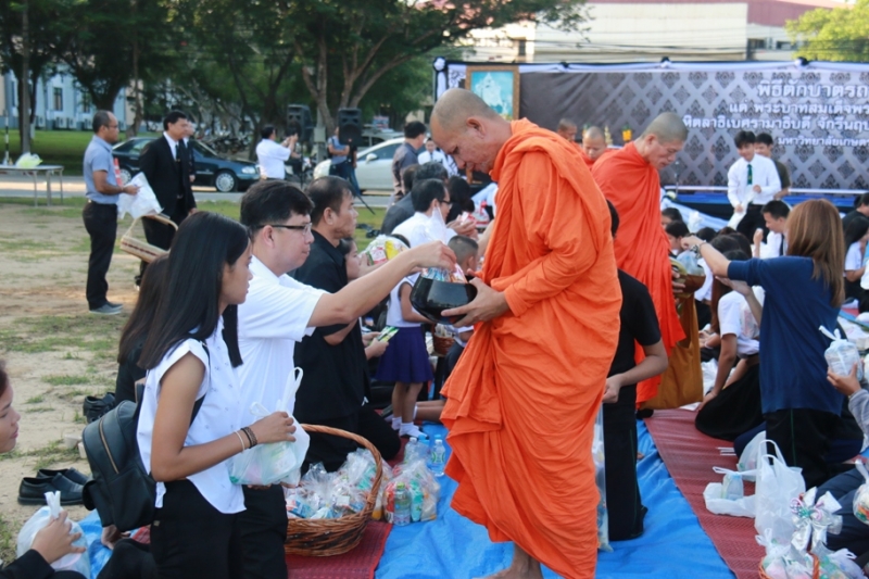 วันที่ 20 ตุลาคม 2559 คณาจารย์ บุคลากร และนิสิต ร่วมพิธี ตักบาตรพระสงฆ์ จำนวน 20 รูป ถวายเป็นพระราชกุศล แด่ พระบาทสมเด็จพระปรมินทรมหาภูมิพลอดุลยเดช มหิตลาธิเบศรรามาธิบดี จักรีนฤบดินทร สยามินทราธิราช บรมนาถบพิตร