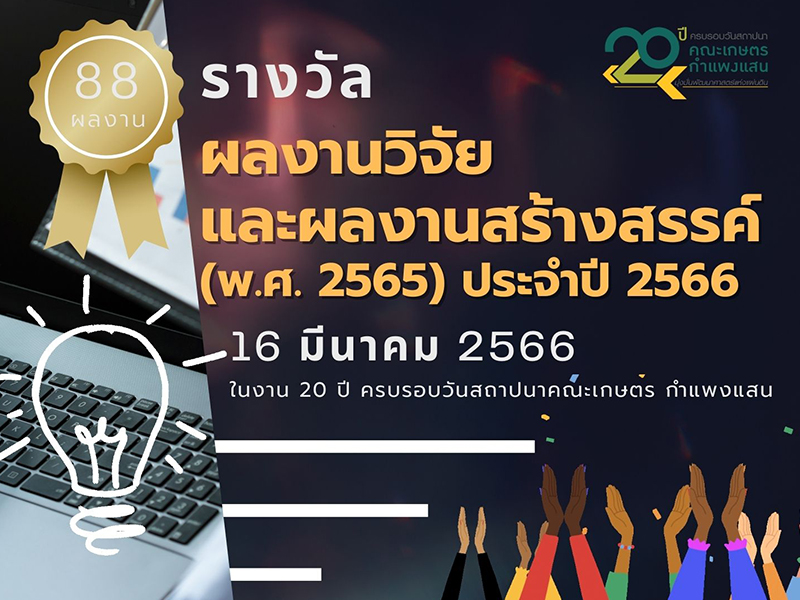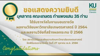 รางวัลผลงานวิจัยและผลงานสร้างสรรค์ (พ.ศ. 2565) ประจำปี 2566คณะเกษตร กำแพงแสน 16 มีนาคม 2566