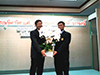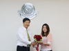 มอบช่อดอกไม้และกระเช้าที่ระลึกแสดงความขอบคุณ อาจารย์ ดร. นริศรา อินทะสิริ