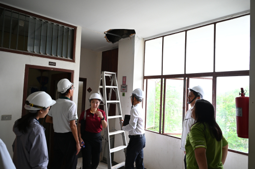 ทีมวิศวกรโครงสร้าง จากคณะวิศวกรรมศาสตร์ กำแพงแสนเข้าตรวจสอบอาคารคณะเกษตร กำแพงแสน เพื่อความปลอดภัย