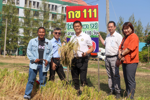 เก็บเกี่ยวข้าว กข 111-เจ้าพระยา 72 ในแปลงผลิตเมล็ดพันธุ์ข้าวแบบเปียกสลับแห้ง
