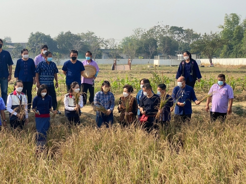 ร่วมเกี่ยวข้าว และมอบพันธุ์ไม้ผล พร้อมวัสดุอุปกรณ์การเกษตร แก่มูลนิธิหมู่บ้านเด็กเฉลิมพระเกียรติฯ
