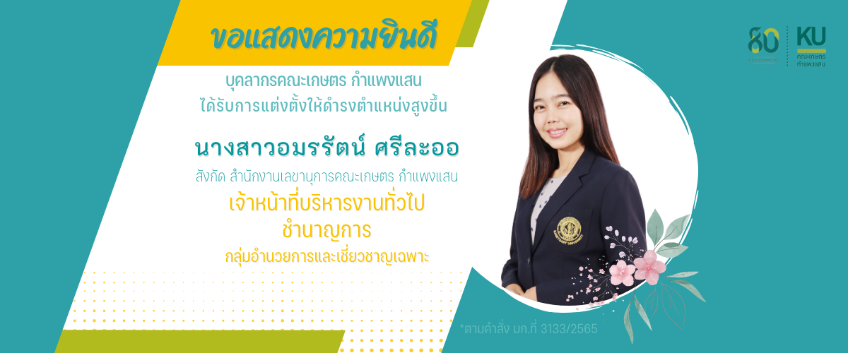 พัฒนาระบบโดย : น.ส.ดวงกมล ด้วงจุมพล หน่วยผลิตสื่อและเทคโนโลยีสารสนเทศ คณะเกษตร กำแพงแสน