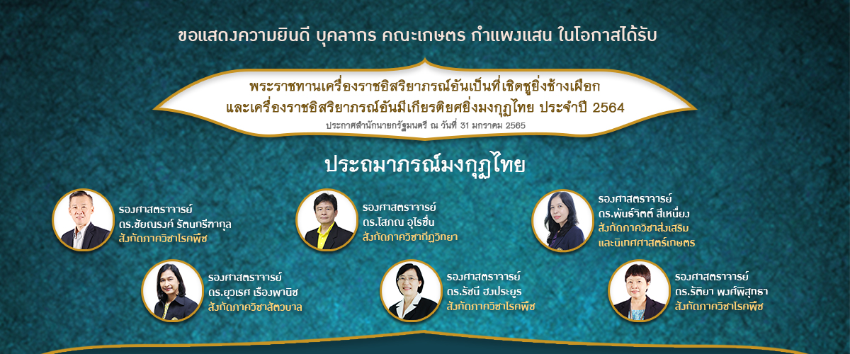 พัฒนาระบบโดย : น.ส.ดวงกมล ด้วงจุมพล หน่วยผลิตสื่อและเทคโนโลยีสารสนเทศ คณะเกษตร กำแพงแสน