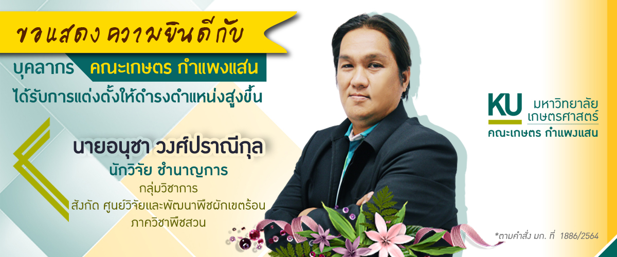 พัฒนาระบบโดย : น.ส.ดวงกมล ด้วงจุมพล หน่วยผลิตสื่อและเทคโนโลยีสารสนเทศ คณะเกษตร กำแพงแสน
