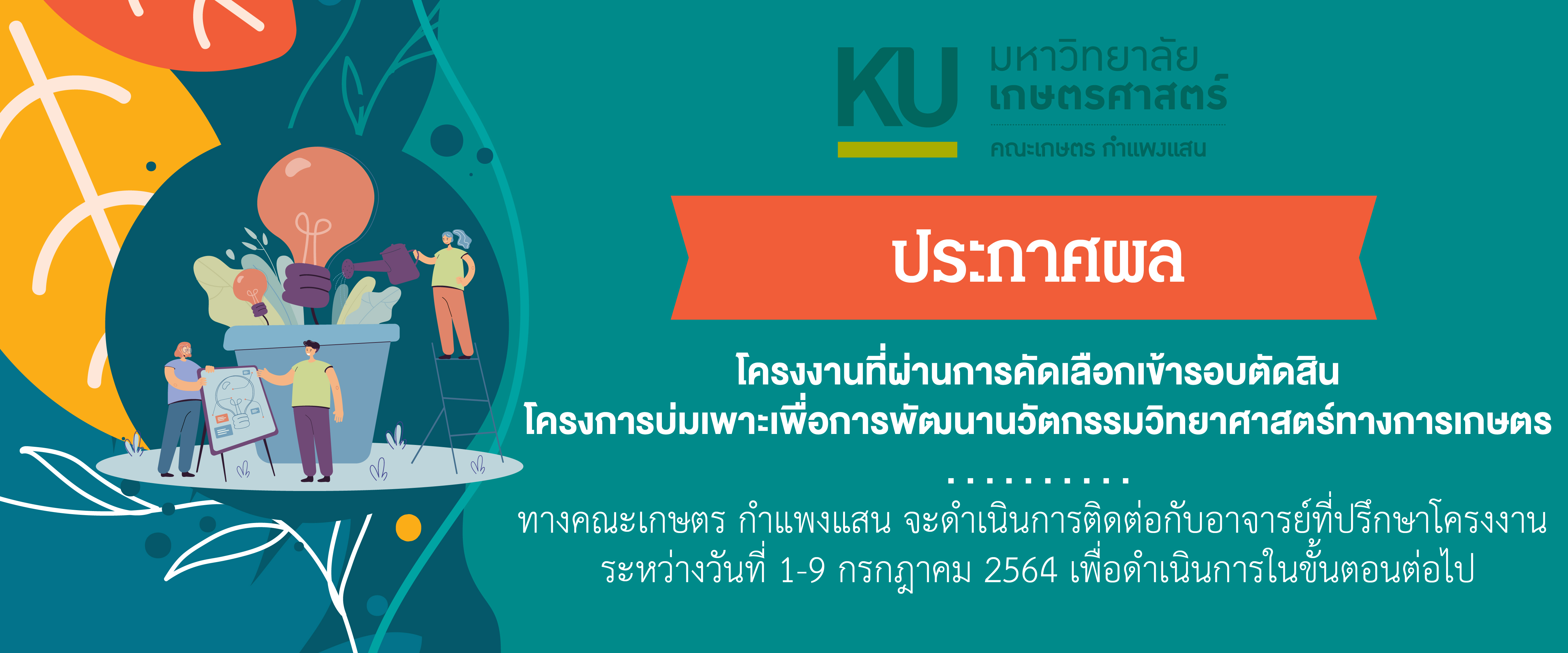 พัฒนาระบบโดย : น.ส.ดวงกมล ด้วงจุมพล หน่วยผลิตสื่อและเทคโนโลยีสารสนเทศ คณะเกษตร กำแพงแสน