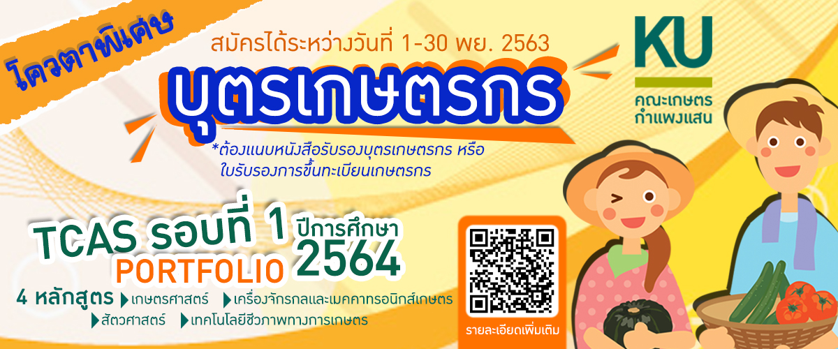 มหาวิทยาลัยเกษตรศาสตร์ วิทยาเขตกำแพงแสน อ.กำแพงแสน จ.นครปฐม 73140