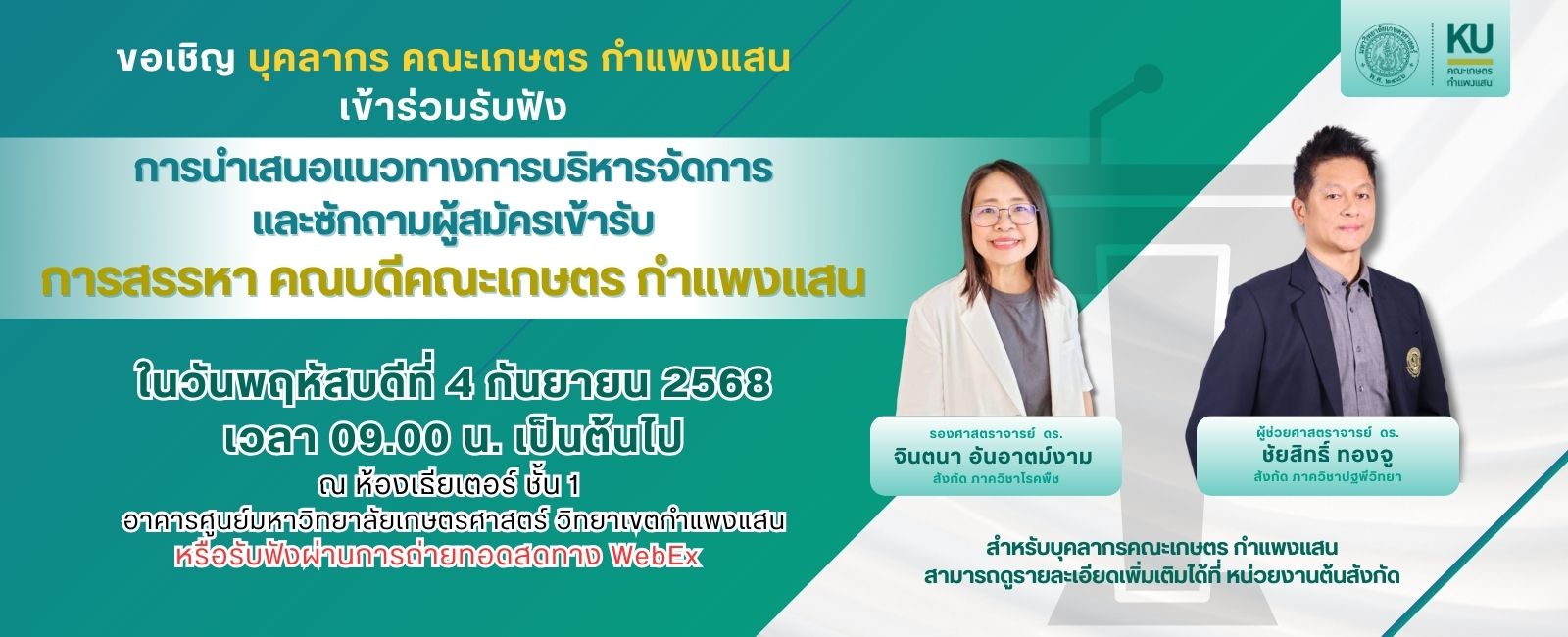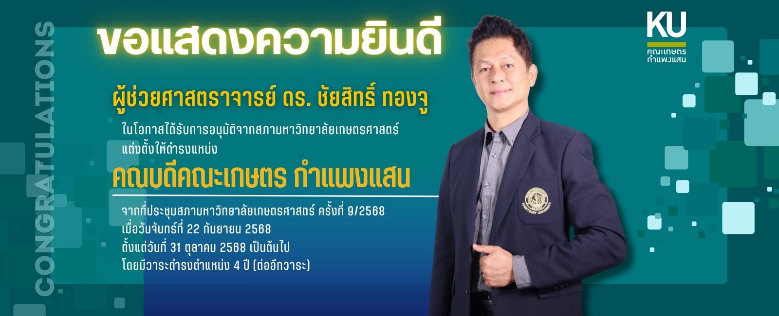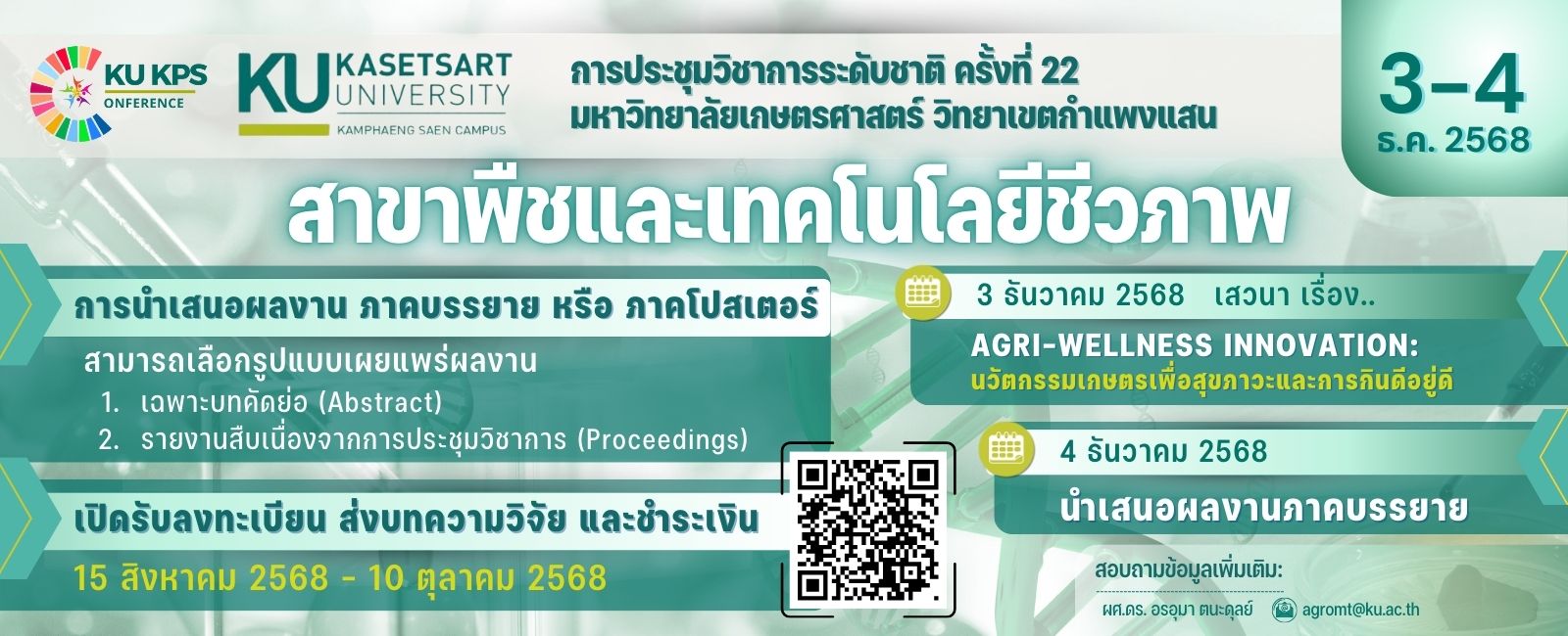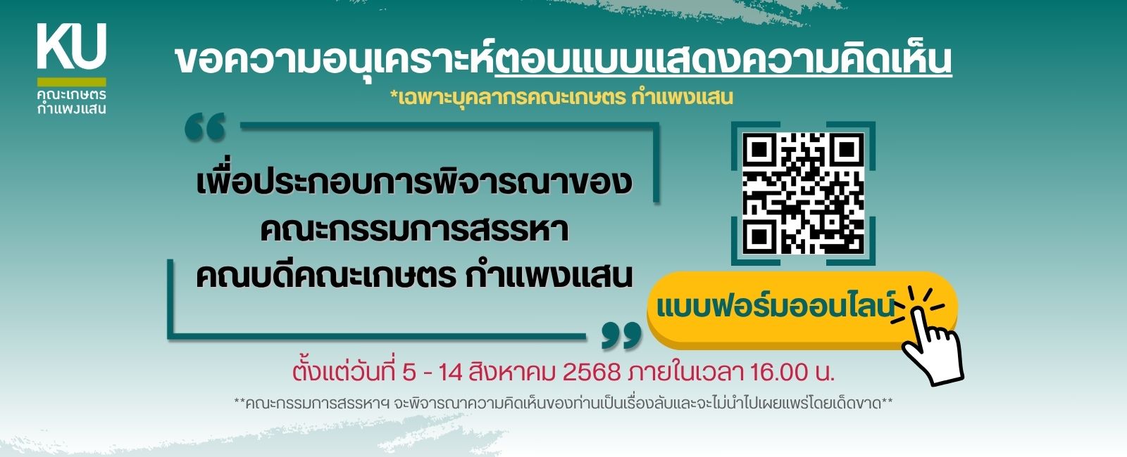 พัฒนาระบบโดย : น.ส.ดวงกมล ด้วงจุมพล หน่วยผลิตสื่อและเทคโนโลยีสารสนเทศ คณะเกษตร กำแพงแสน