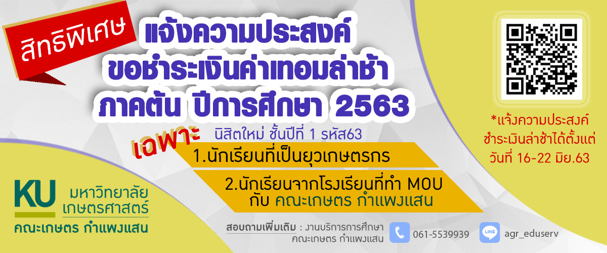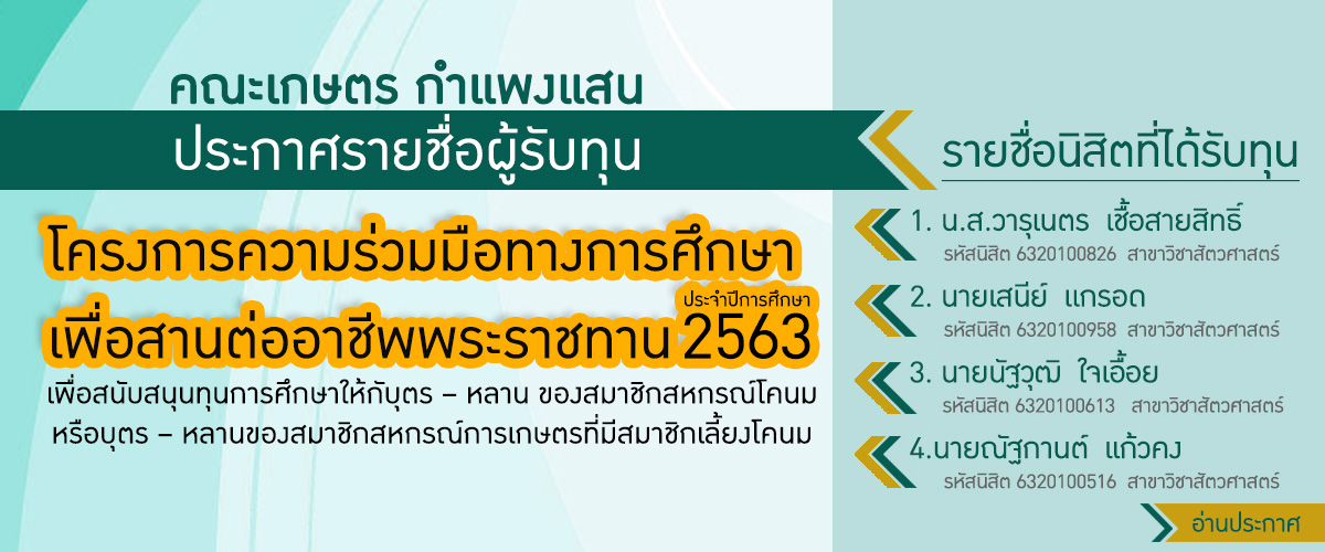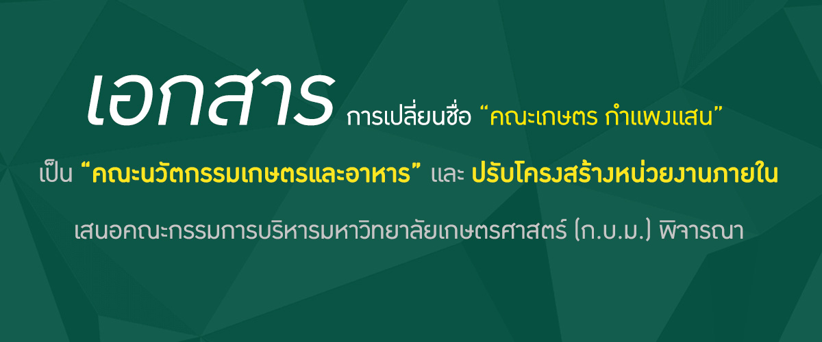 พัฒนาระบบโดย : น.ส.ดวงกมล ด้วงจุมพล หน่วยผลิตสื่อและเทคโนโลยีสารสนเทศ คณะเกษตร กำแพงแสน