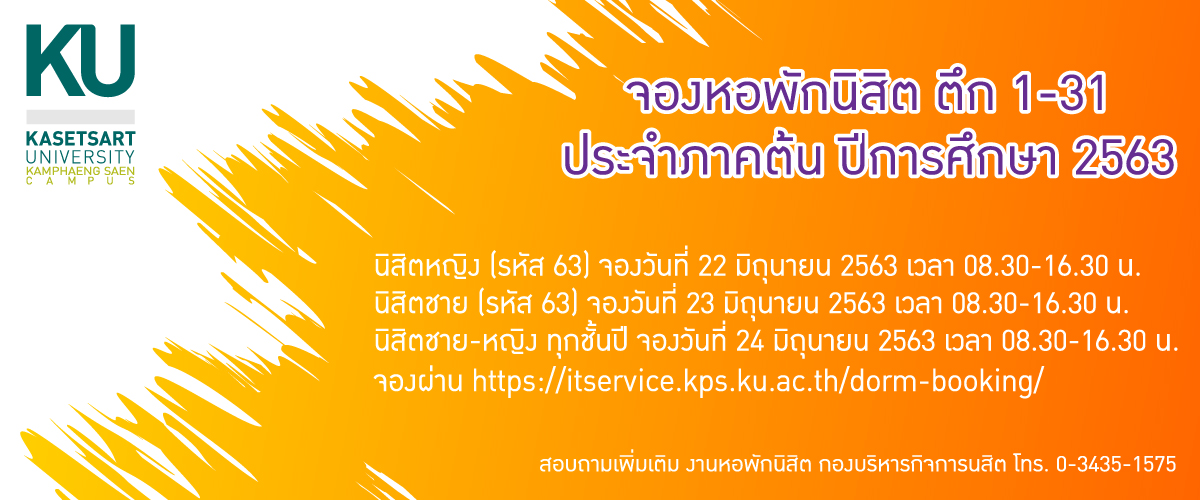 มหาวิทยาลัยเกษตรศาสตร์ วิทยาเขตกำแพงแสน อ.กำแพงแสน จ.นครปฐม 73140