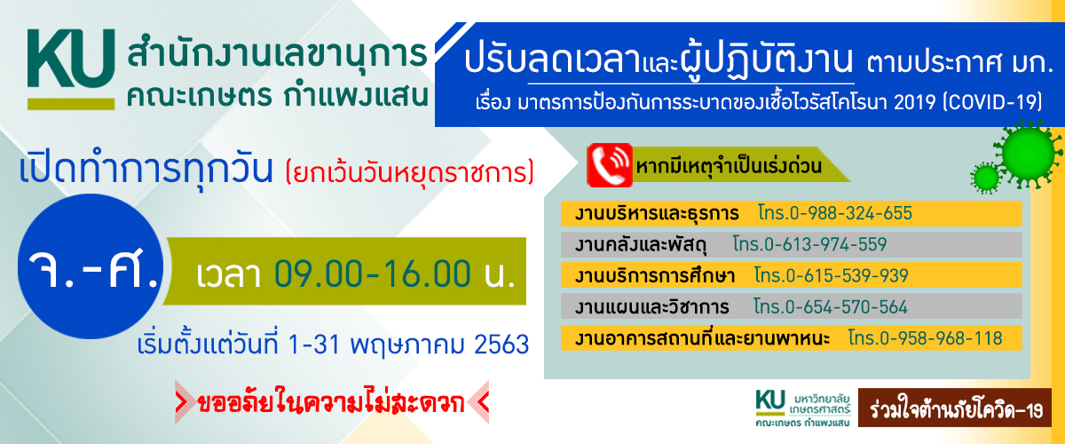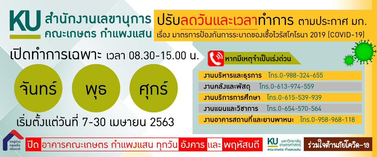 พัฒนาระบบโดย : น.ส.ดวงกมล ด้วงจุมพล หน่วยผลิตสื่อและเทคโนโลยีสารสนเทศ คณะเกษตร กำแพงแสน