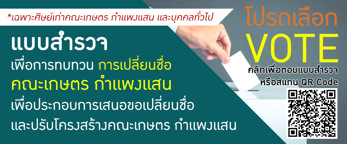พัฒนาระบบโดย : น.ส.ดวงกมล ด้วงจุมพล หน่วยผลิตสื่อและเทคโนโลยีสารสนเทศ คณะเกษตร กำแพงแสน