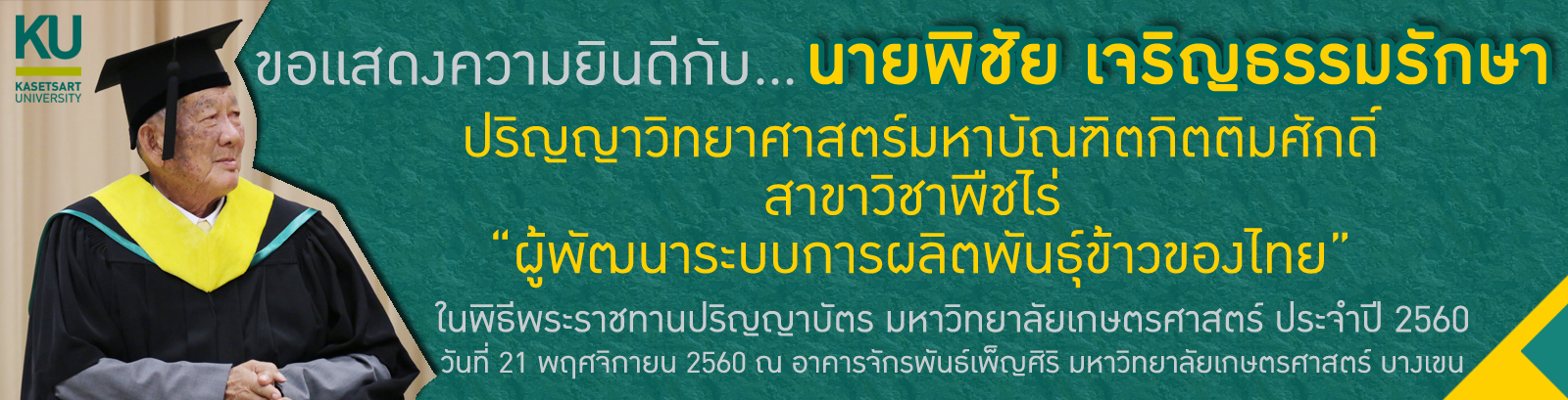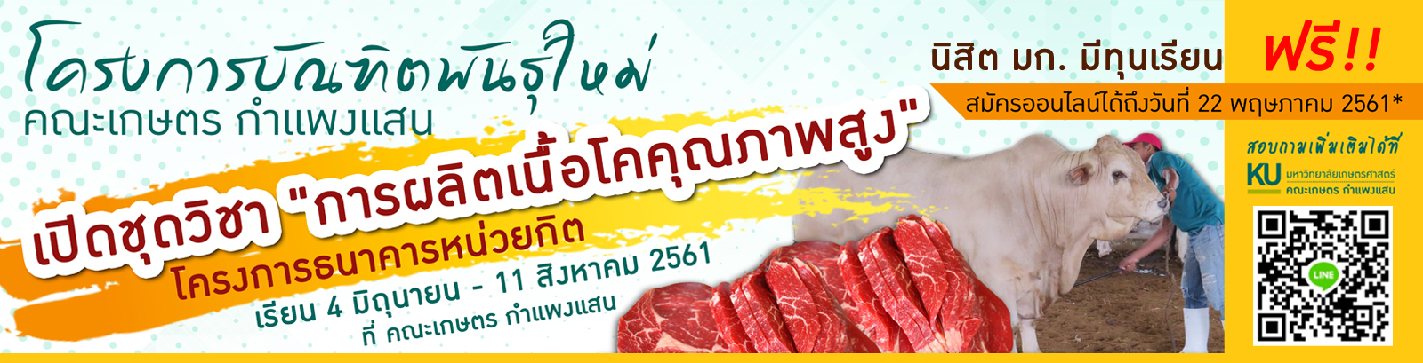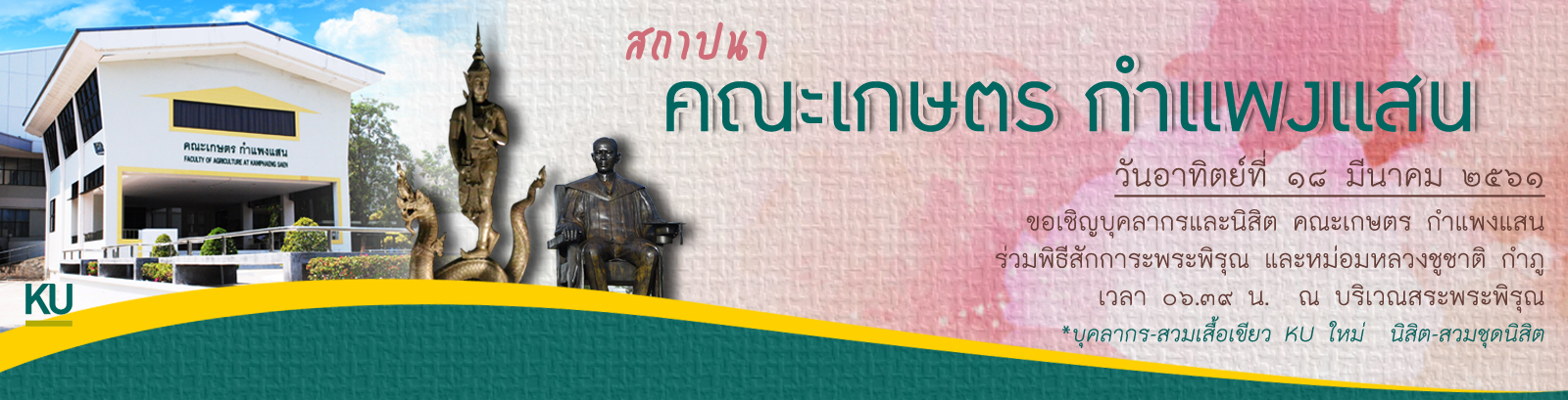 พัฒนาระบบโดย : น.ส.ดวงกมล ด้วงจุมพล หน่วยผลิตสื่อและเทคโนโลยีสารสนเทศ คณะเกษตร กำแพงแสน