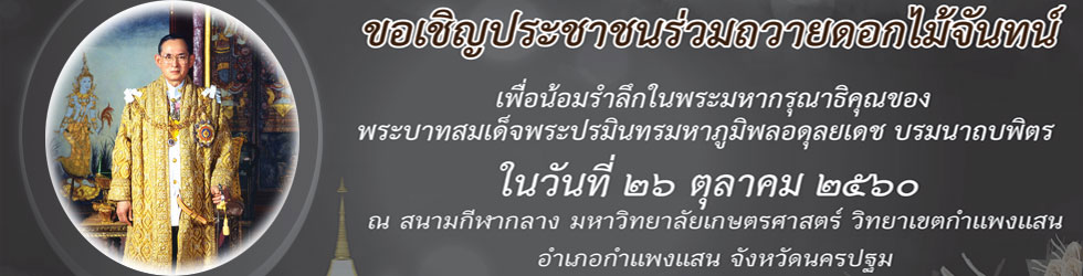 มหาวิทยาลัยเกษตรศาสตร์ วิทยาเขตกำแพงแสน อ.กำแพงแสน จ.นครปฐม 73140