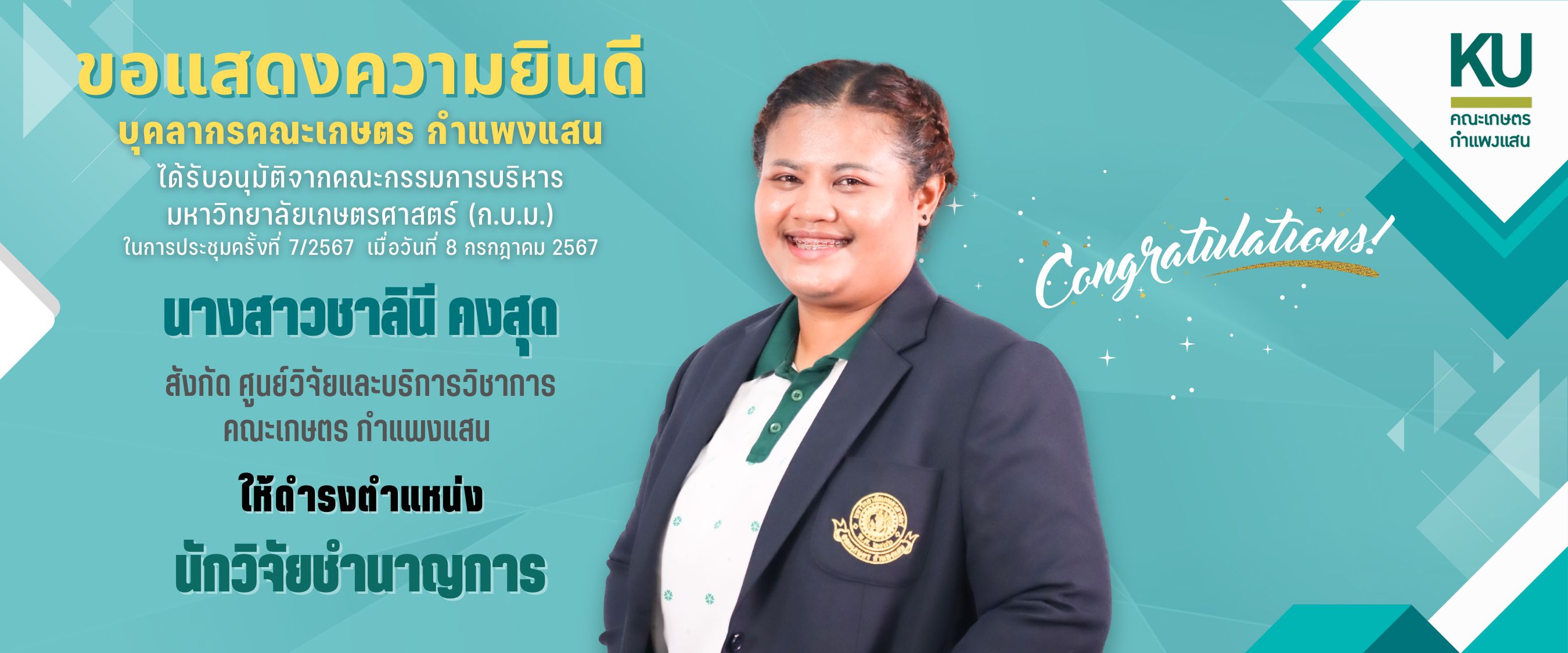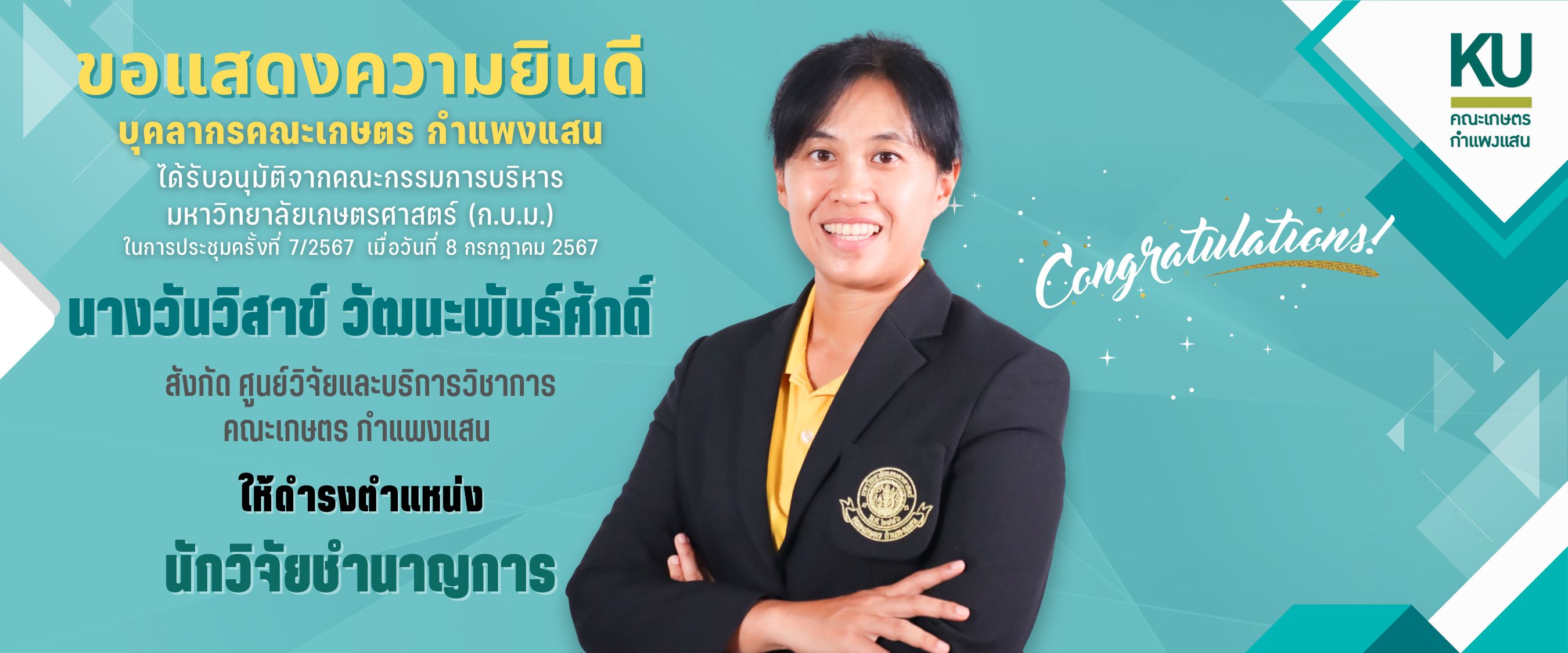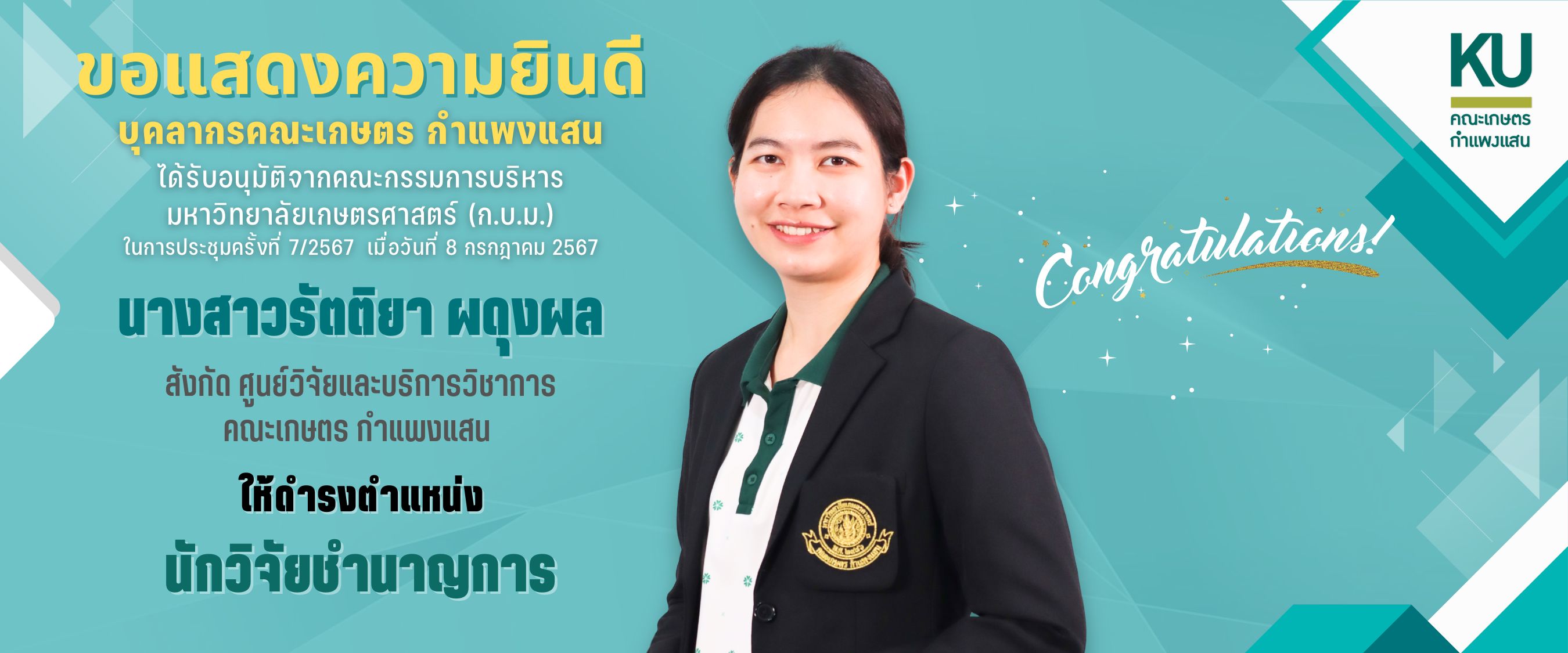 พัฒนาระบบโดย : น.ส.ดวงกมล ด้วงจุมพล หน่วยผลิตสื่อและเทคโนโลยีสารสนเทศ คณะเกษตร กำแพงแสน