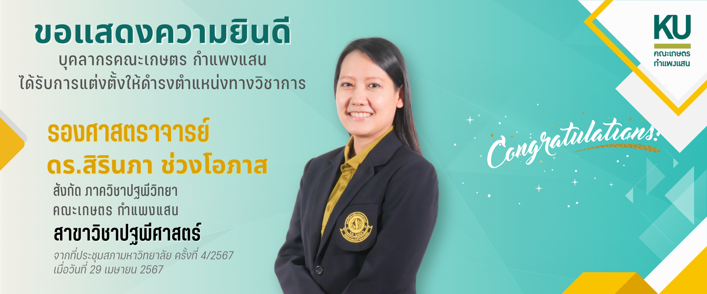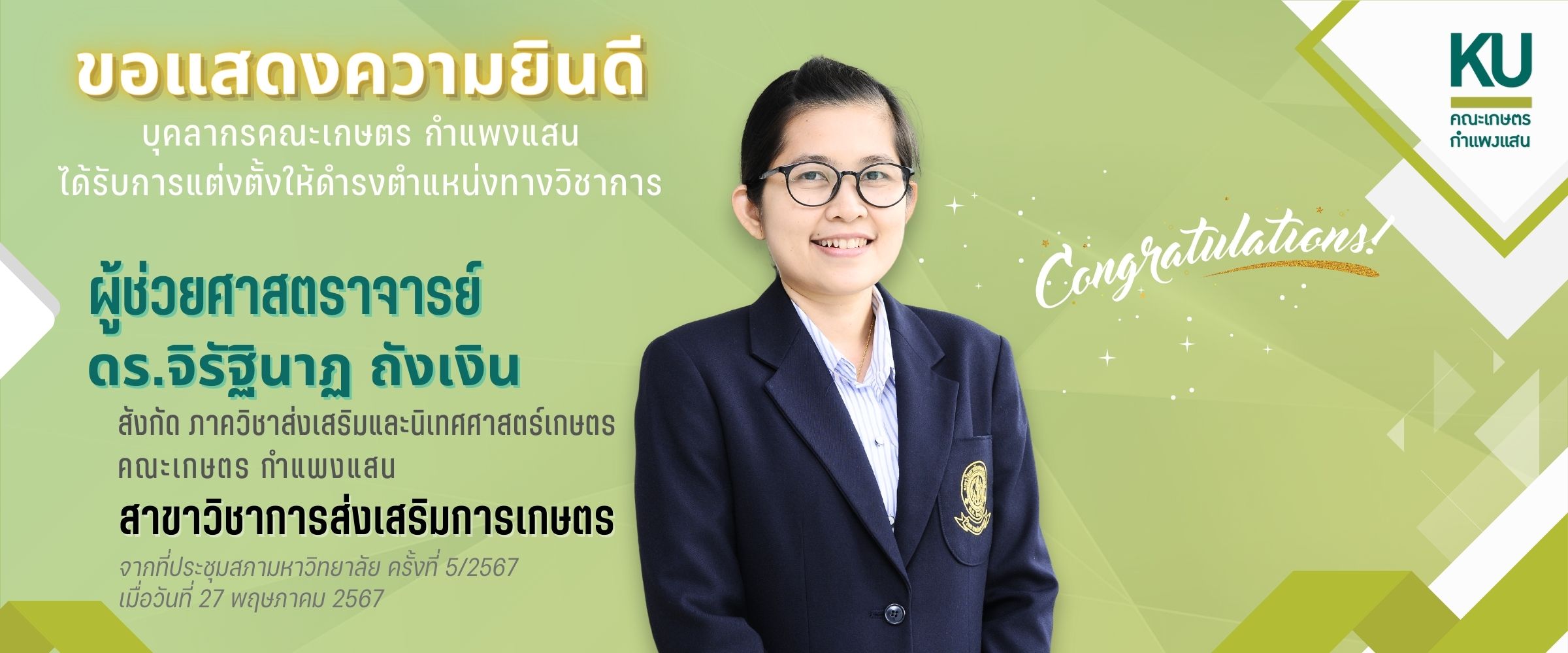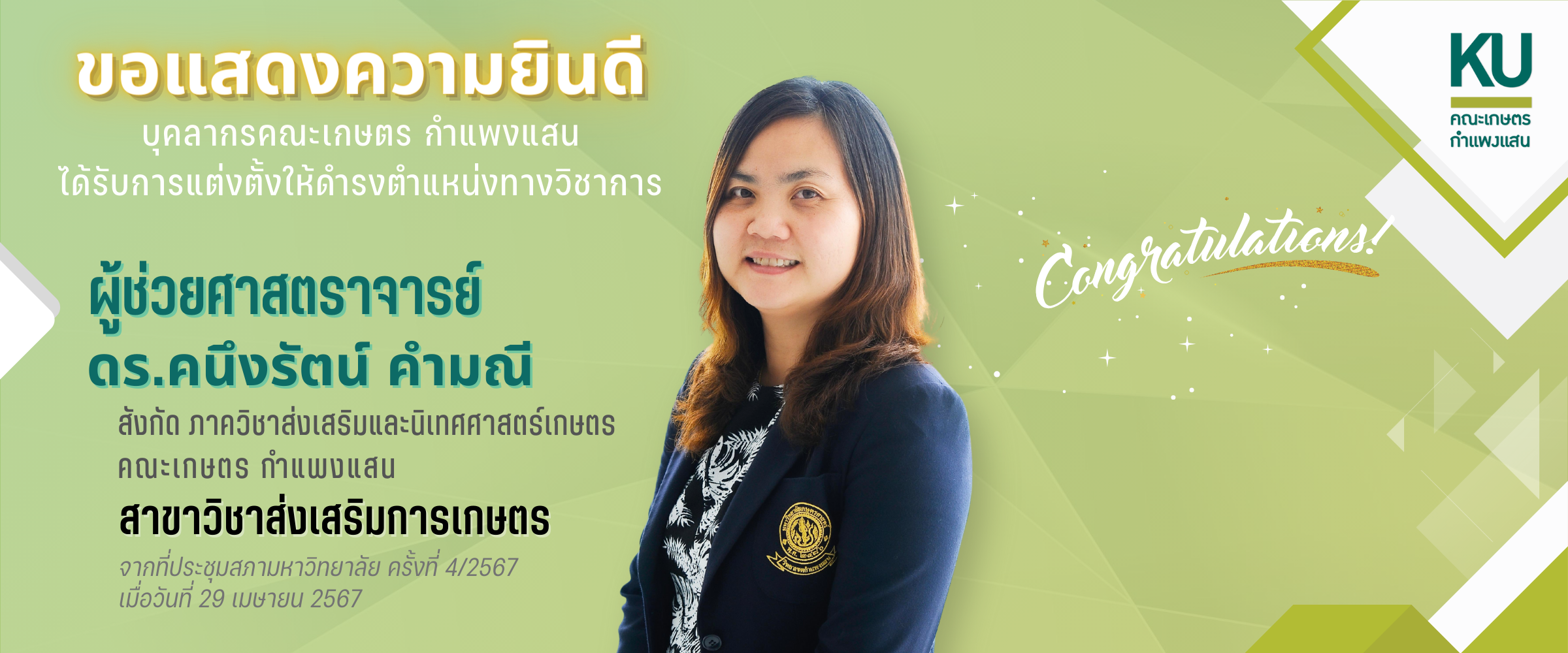 พัฒนาระบบโดย : น.ส.ดวงกมล ด้วงจุมพล หน่วยผลิตสื่อและเทคโนโลยีสารสนเทศ คณะเกษตร กำแพงแสน