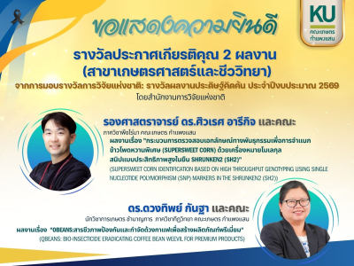 นิสิต คณะเกษตร กำแพงแสน คว้า 3 รางวัล จากการนำเสนอผลงานวิชาการ ในการประชุมวิชาการเกษตร ครั้งที่ 27