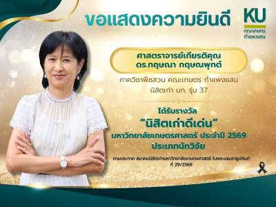 ศาสตราจารย์เกียรติคุณ ดร.กฤษณา กฤษณพุกต์ "นิสิตเก่าดีเด่น" มหาวิทยาลัยเกษตรศาสตร์ ประจำปี 2569