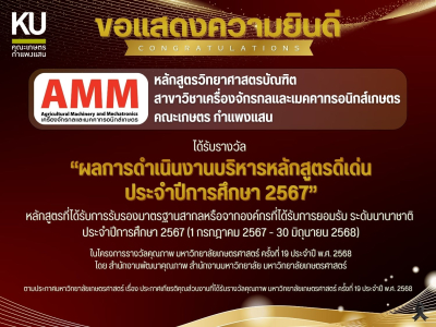 พัฒนาระบบโดย : น.ส.ดวงกมล ด้วงจุมพล หน่วยผลิตสื่อและเทคโนโลยีสารสนเทศ คณะเกษตร กำแพงแสน