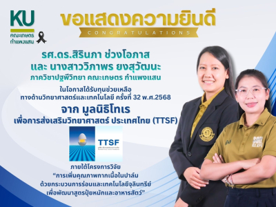 รศ.ดร.สิรินภา ช่วงโอภาส และนางสาววิภาพร ยงสุวัฒนะได้รับทุนวิจัยฯ ครั้งที่ 32 พ.ศ.2568 จากมูลนิธิโทเร