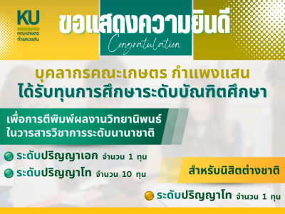 บุคลากรคณะเกษตร กำแพงแสน ได้รับทุนการศึกษาระดับบัณฑิตศึกษา